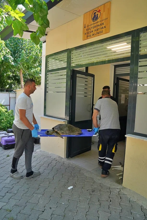 İzmir Büyükşehir Belediyesi Deniz Koruma Şube Müdürlüğü ekipleri, Körfez temizliği sırasında nesli tükenme tehlikesi altında bulunan yaralı Caretta caretta cinsi deniz kaplumbağasını kurtardı. Konak Pasaport İskelesi yakınlarında hasta ve halsiz bir şekilde bulunan deniz kaplumbağası, İzmir Büyükşehir Belediyesi Veteriner İşleri Halk Sağlığı Dairesi Başkanlığı Veteriner İşleri Şube Müdürlüğü’ne bağlı Küçük Hayvan Polikliniği’ne getirildi. 30 kilogram ağırlında yetişkin dişi deniz kaplumbağası veteriner hekimler gözetiminde tedaviye alındı.