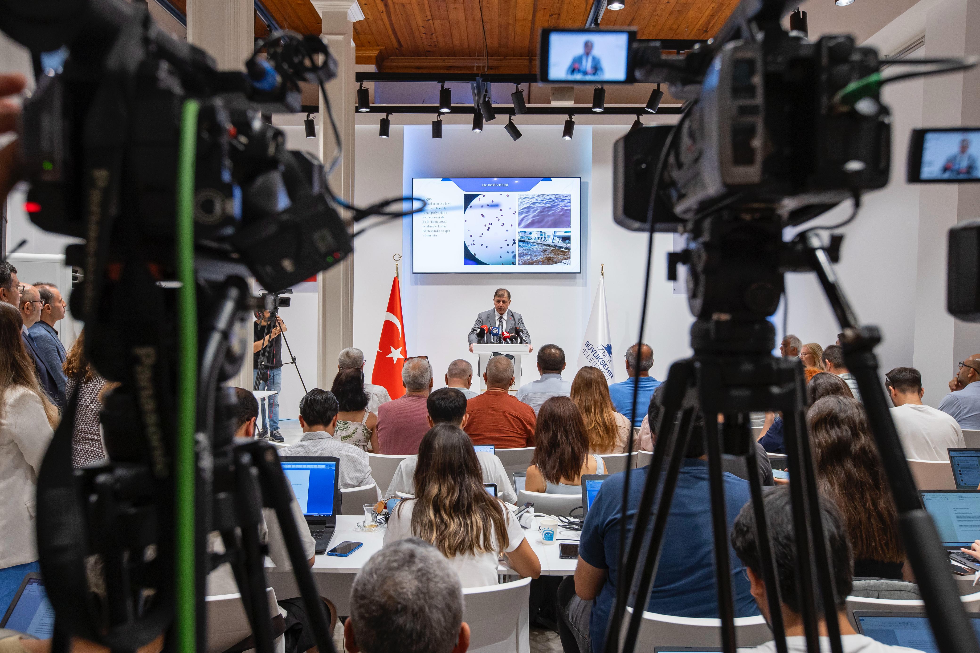 İzmir Büyükşehir Belediye Başkanı Dr. Cemil Tugay, İzmir Körfezi’ndeki balık ölümleri üzerine kamuoyunu bilgilendirmek amacıyla Egemenlik Evi Çetin Emeç Salonu’nda basın toplantısı gerçekleştirdi. Körfez’i kirleten unsurları tek tek sıralayarak İzmir Büyükşehir Belediyesi’nin yetki ve sorumlulukları çerçevesinde devam eden ve yapılacak çalışmaları aktardı. Söz konusu kirliliğin önlenmesi ve denetlenmesi konusunda yetki ve sorumluluğun önemli kısmının Çevre Şehircilik ve İklim Değişikliği, Tarım ve Orman, Ulaştırma ve Altyapı bakanlıklarında olduğunu ancak İzmir Büyükşehir Belediyesi olarak her türlü iş birliğine hazır olduklarını dile getiren Başkan Tugay, Körfez’deki kirliliğin incelenmesi için bilim kurulu oluşturacaklarını ve İzmirlilere şeffaf bir şekilde bilgilendirmede bulunacaklarını duyurdu. Körfez’de yaşanan kirlilikle herkesin yüzleşmesi gerektiğini söyleyen Başkan Tugay, “Bu çift taraflı bir sorun. İzmir Büyükşehir Belediyesi ve bakanlıklar arasında Körfez sorunu ile ilgili olarak yoğun iletişim halinde olmalıyız. Ben elimi uzatacağım, umuyorum o el boş kalmayacak. İzmir adına uzattığım bu el sıkılacak ve çözümü hep beraber sağlayacağız. Çok sayıda personel ve bürokrat arkadaşımızla çalışıyoruz. Türkiye’nin her tarafından bilim insanlarıyla yoğun dayanışma içindeyiz. Körfez’de de, yangınlarda da gerçek bir iş birliği içinde olmazsak, herkes üzerine düşeni yapmazsa çözüm üretemeyiz. Birbirini suçlayan kişi ve kurumlarla dönüşmek, halkımızı incitiyor. Olayı politik söyleme çevirmek için çaba gösterenler olacaktır ama uzattığım el sıkılana kadar elimi havada tutmaya devam edeceğim” diye konuştu.