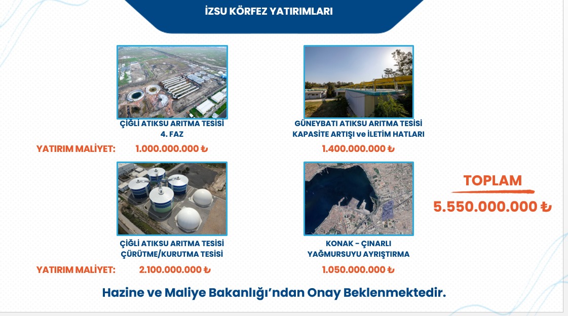 - Tugay, Körfez’in temizlenme sürecine hizmet edecek yaklaşık 10 milyar liralık bir yatırımı İzmir Büyükşehir Belediyesi olarak göğüslediklerini belirterek, maliyeti 20 milyar liraya ulaşan navigasyon ve sirkülasyon kanallarının yapımı içinse hükümetin devreye girmesi gerektiğine dikkat çekti.