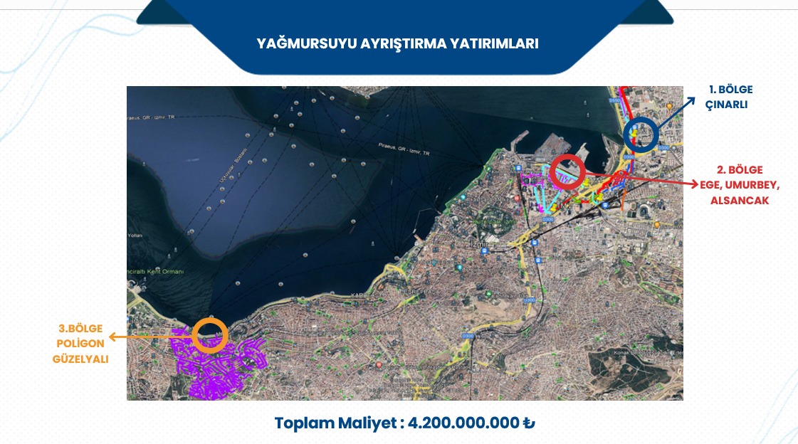 Başkan Tugay, “Balık ölümleri meydana gelmeden önce planlanan çalışmalara ilişkin bilgi veren Başkan Tugay, “Kasım ayında çıkacağımız ihale ile üç ayrı bölgede yağmur suyu ve atık su ayrıştırma kanal altyapı çalışması yapacağız. Hazırlıklarımız neredeyse tamam. Çınarlı’da birinci bölge, Umurbey Alsancak’ta ikinci bölge, Poligon Güzelyalı’da 3. bölge olacak. 4 milyar 200 milyon liralık yağmur suyu ayrıştırma yatırımı için hazırız. Bu süreç zaten doğal seyrinde ilerliyor. Bu olay vesilesiyle bu çalışmayı iletmek isterim. Çok kısa süre içinde bitirmeyi planladığımız çalışmalarımız var” diye konuştu.