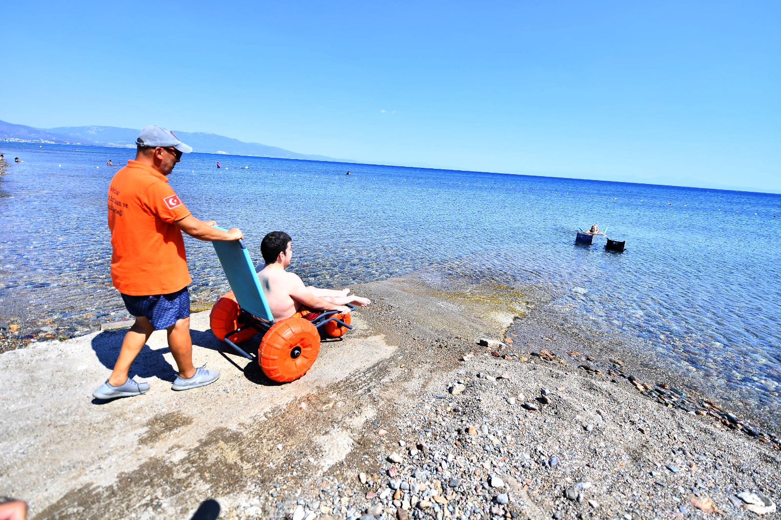 İzmir Büyükşehir Belediyesi Engelsiz İzmir Şube Müdürlüğü, denize gitmek isteyen engelli yurttaşlara engelsiz ulaşım araçları ile destek oluyor. Büyükşehir’in engellilerin erişimine uygun araçlarıyla engelli rampası bulunan plajlara giden yurttaşlar, özgürlüğe kulaç atıyor.