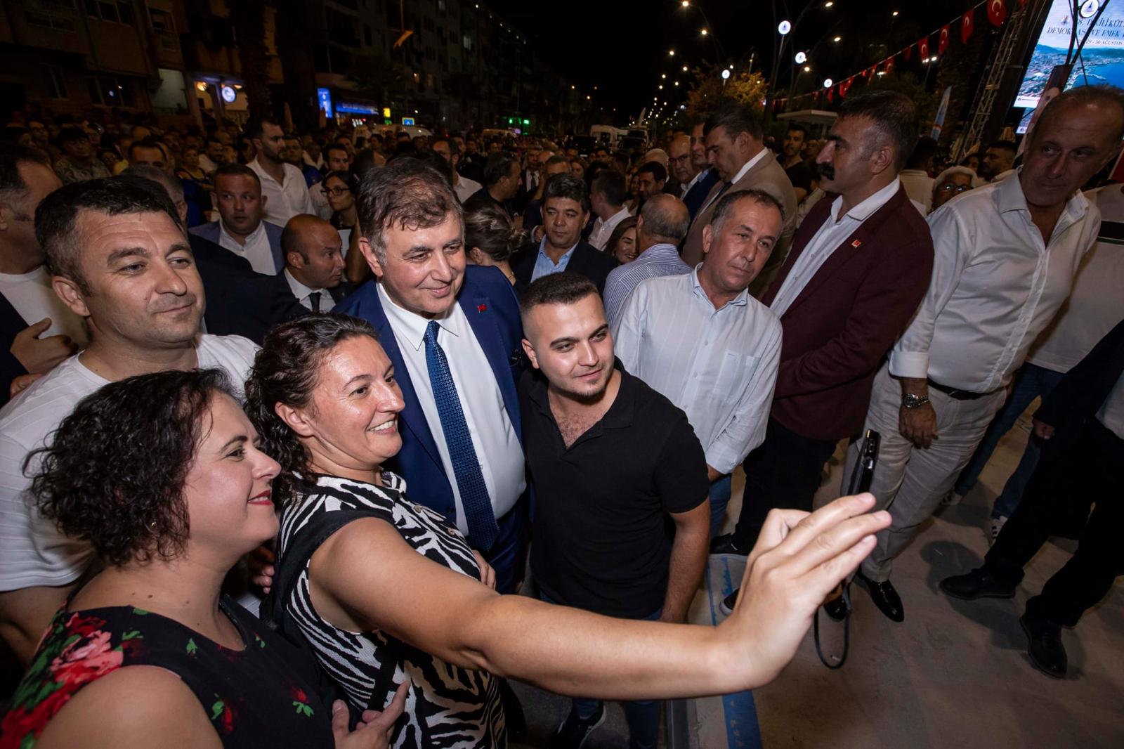 İzmir Büyükşehir Belediye Başkanı Dr. Cemil Tugay, “Bu festival, biz İzmirliler için sahip olduğumuz kültürel zenginliklerimizi, demokrasiye olan bağlılığımızı, emeğe verdiğimiz değeri bir araya gelerek kutladığımız, bir nevi bir aile toplantısı. Bugün burada aramızdaki bağı güçlendiriyor, geleneklerimizi ve değerlerimizi yaşatarak gelecek kuşaklara aktarıyoruz. Tıpkı bizden öncekilerin bize aktardığı gibi. Dikili ilçemizin bu kültürel mirasa sahip çıkmasını, istikrarlı şekilde değerlerini korumasını ben de çok değerli buluyorum. 31 Mart seçimlerindeki zaferden sonra, birçoğu aramızda bulunan belediye başkan arkadaşlarımızla İzmir'in tüm ilçelerinde İzmirlilerin tüm sorunlarına sahip çıkarak çalışmaya devam ettiğimizi, bize olan inancınızı, desteğinizi hissettiğimizi, bu güven ve gururla önümüzdeki ilk genel seçimde iktidar olmak üzere yürüyüşe devam ettiğimizi sizlere ifade etmek isterim. 30 ilçemizde olduğu gibi Dikili'yi daha iyi hizmetle nasıl kavuştururuz diye konuşuyoruz. Uzun zamandır beklenen, bekletilen, istendiği halde yapılamayan Dikili'mizin beklediği altyapı çalışmasını Kasım ayından itibaren başlatıyoruz. Sizlere söz veriyorum; bundan sonra Dikili'de denize hiçbir kirli su akmayacak. Kasım ayından sonra yapacağımız arıtma tesisiyle, terfi istasyonlarıyla, altyapı çalışmaları ile tüm mahallelerin kirli suları tertemiz olacak” dedi.