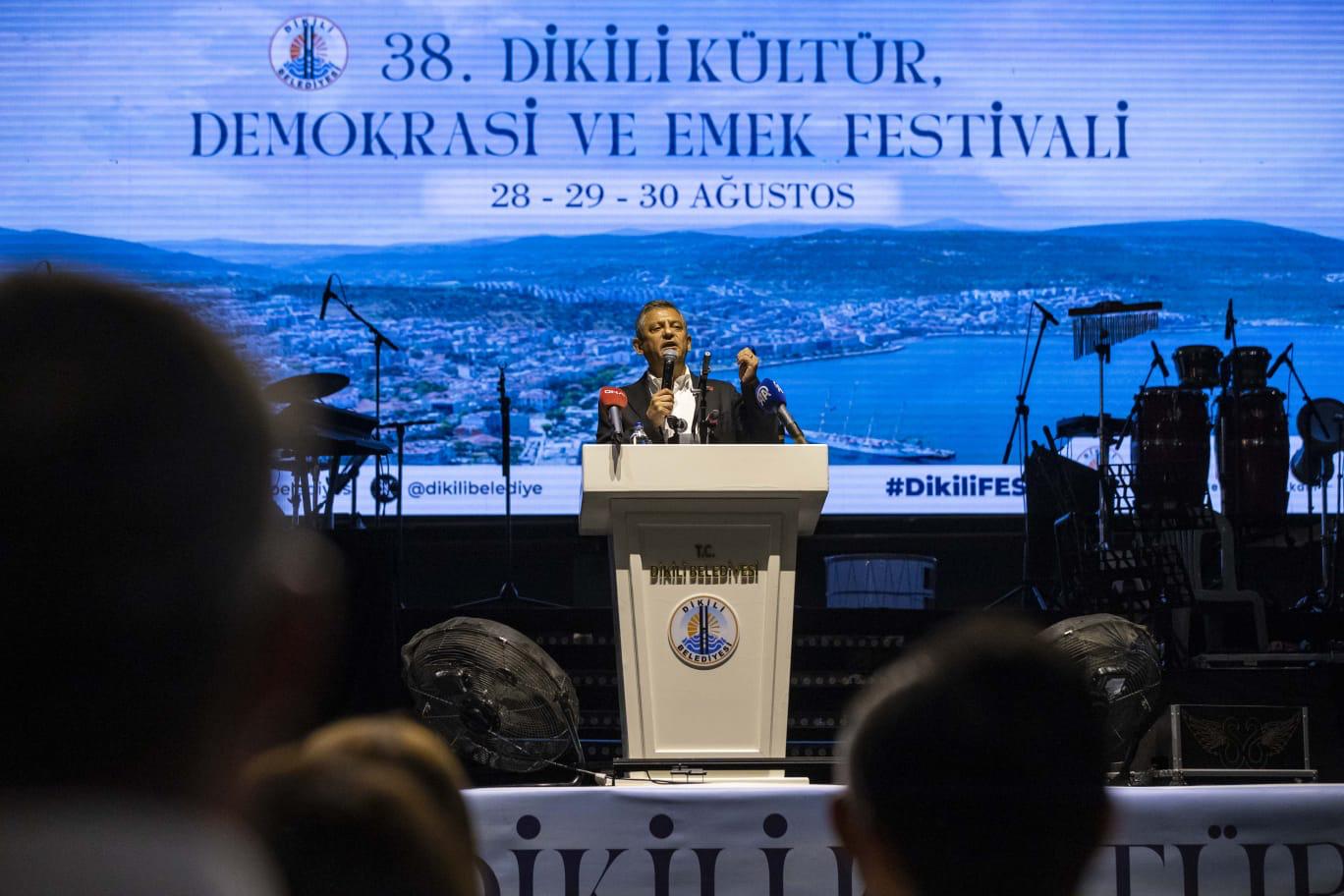 Dikili Belediyesi tarafından bu yıl 38'incisi yapılan Dikili Kültür, Demokrasi ve Emek Festivali 75. Yıl Parkı'nda düzenlenen törenle başladı. 30 Ağustos'a kadar devam edecek festivalin açılışını Cumhuriyet Halk Partisi Genel Başkanı Özgür Özel yaptı. Dikili Belediye Başkanı Adil Kırgöz ile eşi Nesrin Kırgöz'ün ev sahipliğinde düzenlenen açılışa; CHP lideri Özgür Özel, annesi Şükran Özel ve babası Talat Özel ile İzmir Büyükşehir Belediye Başkanı Dr. Cemil Tugay ve eşi Öznur Tugay, CHP Genel Başkan Yardımcısı ve Parti Sözcüsü Deniz Yücel, CHP Genel Başkan Yardımcısı Murat Bakan, Parti Meclisi üyeleri, CHP'li milletvekilleri, CHP İzmir İl Başkanı Şenol Aslanoğlu, ilçe belediye başkanları, muhtarlar, sivil toplum kuruluşlarının başkanları ile temsilcileri, meclis üyeleri ve vatandaşlar katıldı.