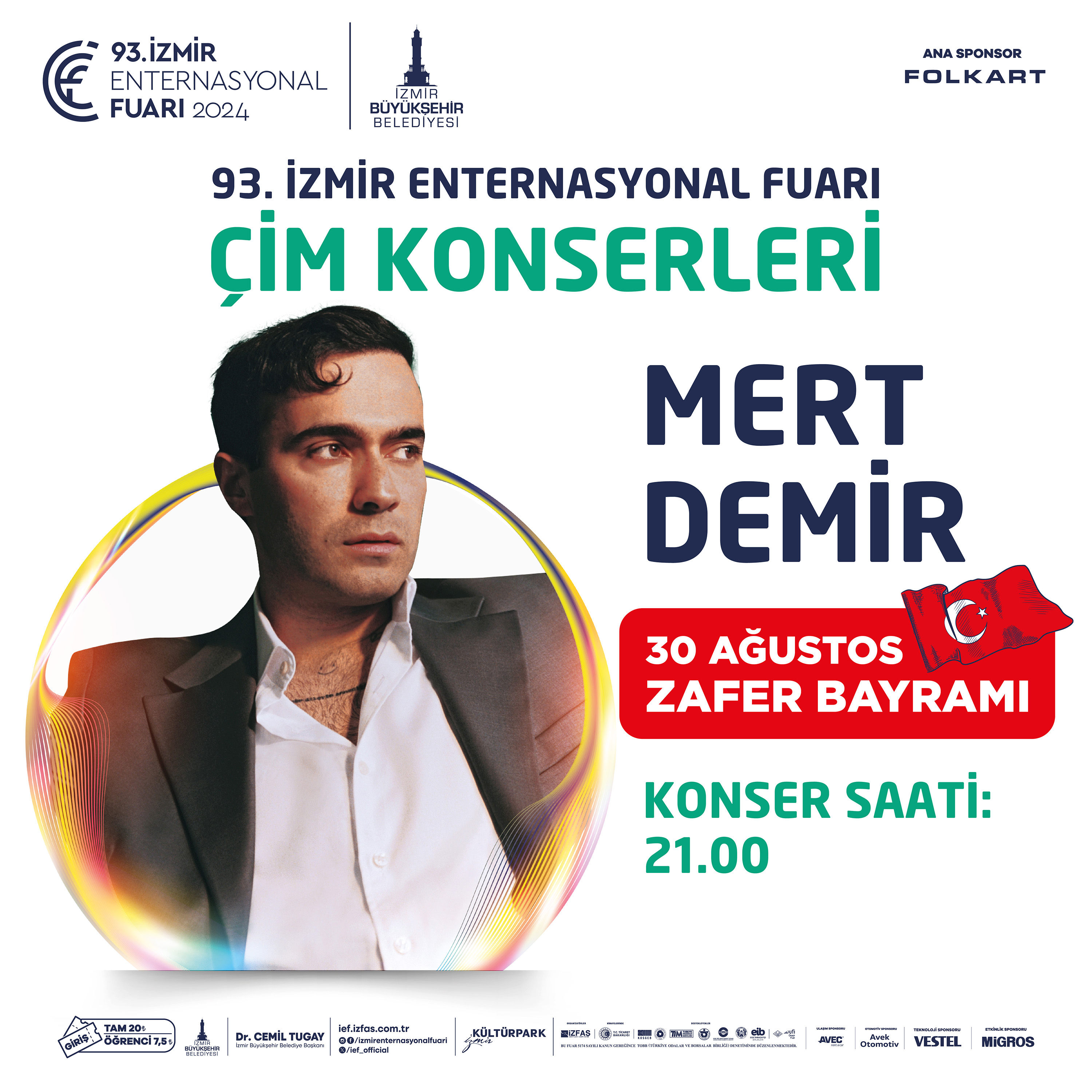 İzmir Büyükşehir Belediyesi, Zafer Bayramı coşkusunu konserlerle doruğa çıkaracak. 93’üncü İzmir Enternasyonal Fuarı’nın da açılacağı 30 Ağustos’ta saat 18.00'de Konak Meydanı'nda, Kemeraltı Çarşısı’nın girişinde İzmir Büyükşehir Belediyesi Bandosu konser verecek. Saat 21.00'de Kültürpark yeraltı otoparkı üstünde bulunan çim alanda sevilen sanatçı Mert Demir sahne alacak. 21.30’da ise Alsancak Gündoğdu Meydanı semalarında 500 dron ile Zafer Bayramı temalı bir gösteri yapılacak. 31 Ağustos’ta saat 20.30’da da Kültürpark’ta 93’üncü İzmir Enternasyonal Fuarı’nın bu yılki teması olan teknoloji konseptiyle bir dron şov daha İzmirliler ile buluşacak.