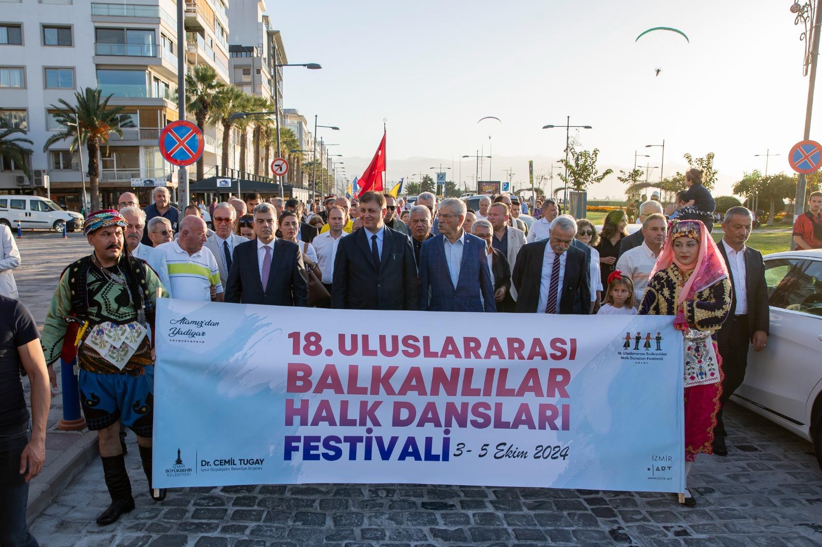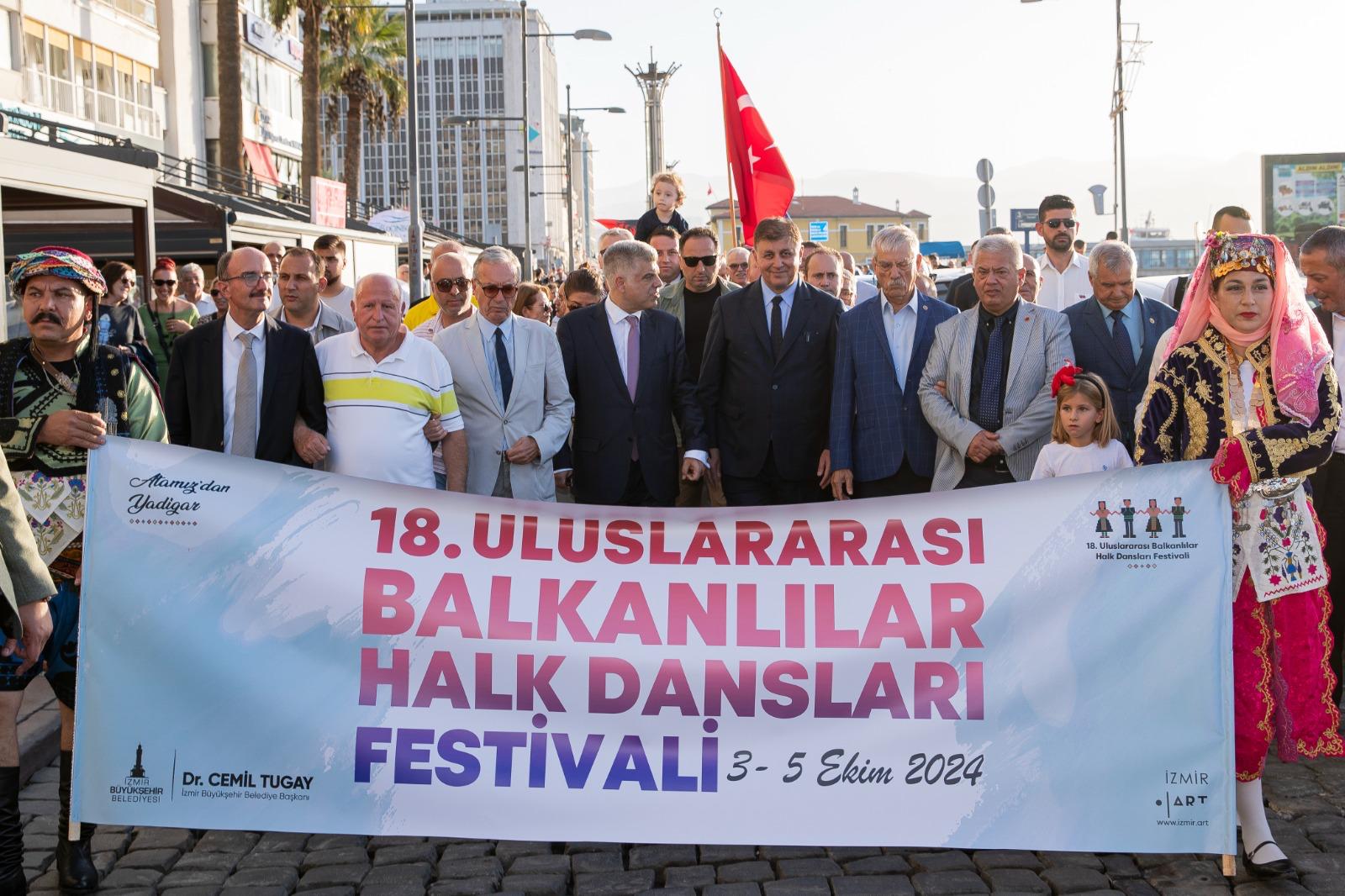 İzmir Büyükşehir Belediyesi tarafından bu yıl 18’incisi düzenlenen Uluslararası Balkanlılar Halk Dansları Festivali, Cumhuriyet Meydanı’nda düzenlenen törenle başladı. Törene İzmir Büyükşehir Belediye Başkanı Dr. Cemil Tugay, İzmir Büyükşehir Belediyesi Başkan Vekili Dr. Zafer Levent Yıldır, İzmir Büyükşehir Belediyesi Meclis Başkan Vekili Altan İnanç’ın yanı sıra konuk ülkelerden gelen katılımcılar ve İzmirliler katıldı.