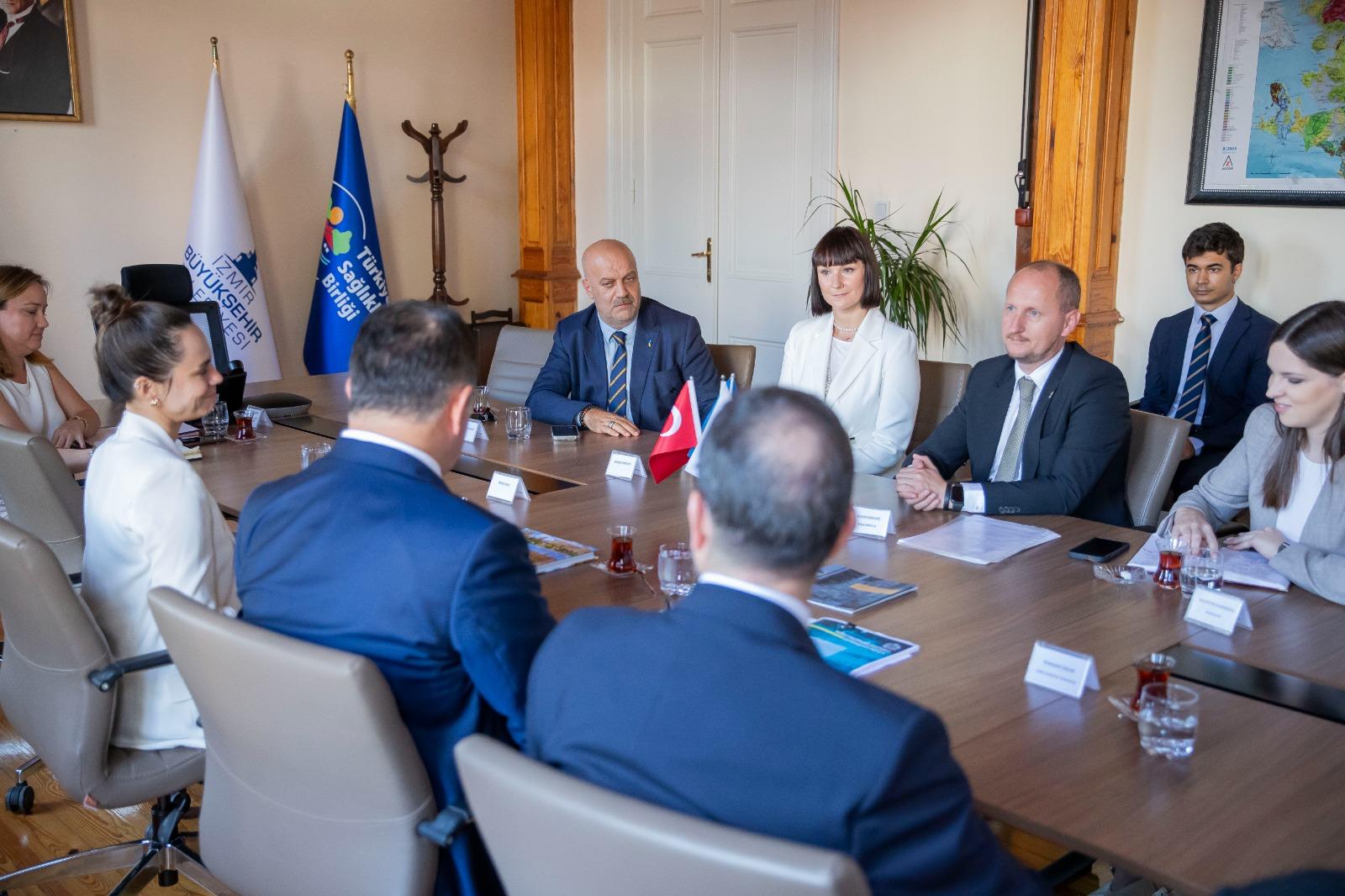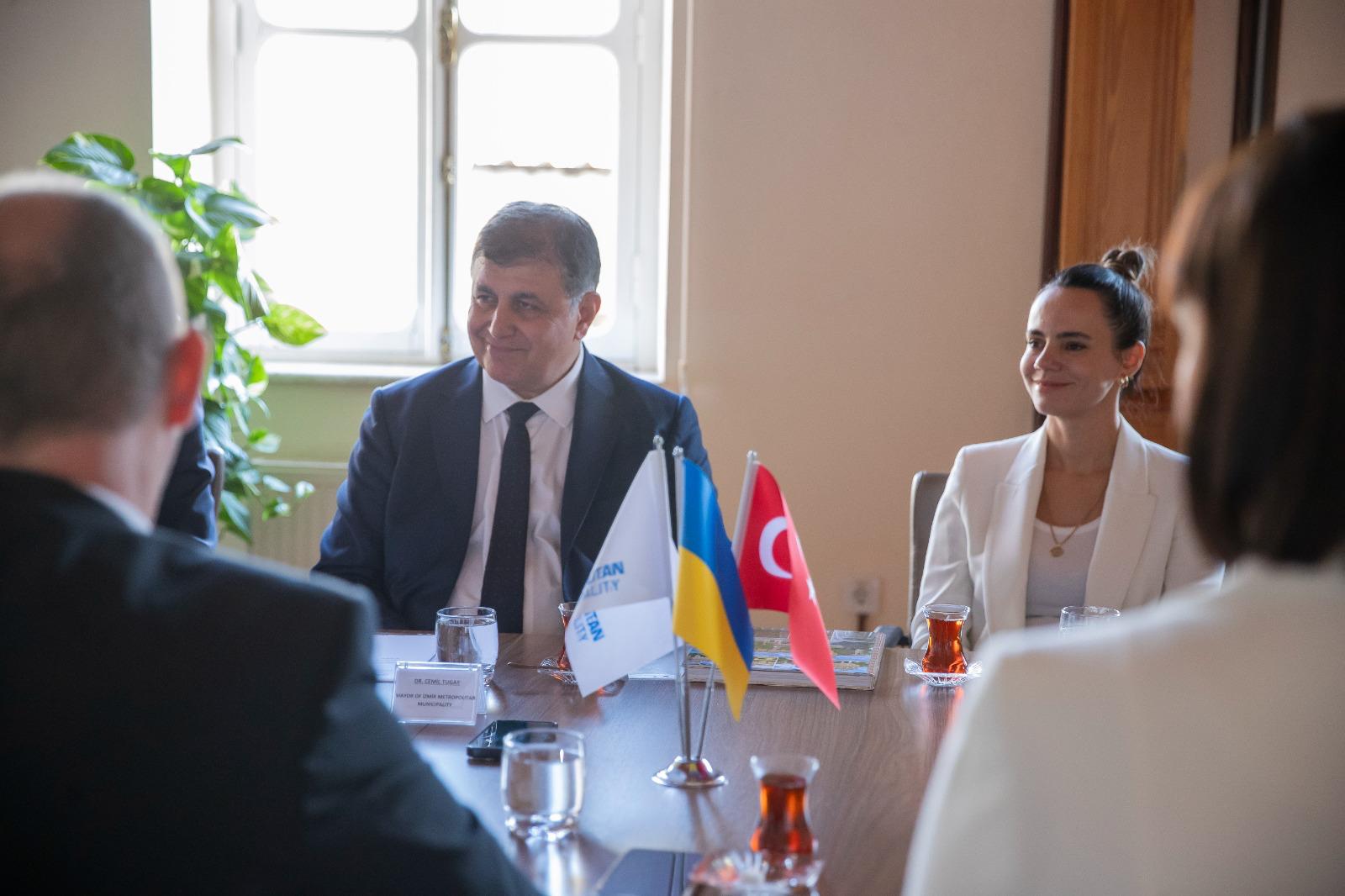 Ukrayna’nın İstanbul Başkonsolosu Roman Nedilskyi ve eşi Liudmyla Nedilska ile beraberindeki heyet, İzmir Büyükşehir Belediye Başkanı Dr. Cemil Tugay’ı makamında ziyaret etti. Ziyarete Başkan Cemil Tugay’ın eşi Öznur Tugay ve İzmir Büyükşehir Belediyesi bürokratları katıldı.