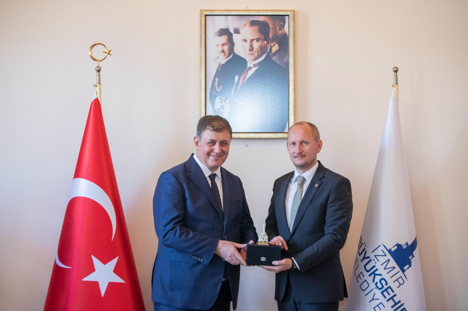 İzmir Büyükşehir Belediye Başkanı Dr. Cemil Tugay, Ukrayna’nın İstanbul Başkonsolosu Roman Nedilskyi ve beraberindeki heyeti ağırladı. İzmir’in kardeş kenti Çernivtsi ile yapılabilecek iş birliklerinin görüşüldüğü toplantıda Başkan Cemil Tugay, “Bizden isteğiniz olduğunda elimizden geleni yapmak için her zaman hazır olacağız” dedi.