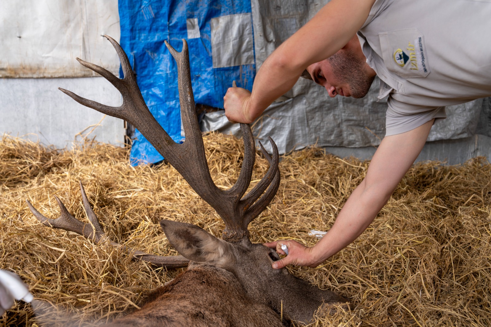 İzmir Büyükşehir Belediyesi Veteriner İşleri Halk Sağlığı Daire Başkanlığı’na bağlı Veteriner Hekim Şükrü Erdem Onur, “Yaralı kızıl geyik bize getirildi ve hemen anesteziye alıp tedaviye başladık. Röntgen çekildi. Ayakta kırık olduğunu gördük. Yine ateşli silahla yaralanma sonucu ayağında çok sayıda saçmanın olduğunu da tespit ettik. Ayağı çok kötü durumdaydı. Her iki tarafta tenis topu büyüklüğünde çıkıntılar var. Bunların kemik üremesine bağlı olduğunu düşünüyoruz” dedi. 4-5 yaşlarında olduğu tahmin edilen geyiğin, önümüzdeki hafta ortopedi operasyonuna alınacağını vurgulayan Onur, “Hayvanı anesteziye alıp ortopedi operasyonu yapacağız. Zorlu bir operasyon olacak. Yaklaşık 1 buçuk yıldır bu şekilde doğada yaşadığını tahmin ediyoruz. Kızıl geyiği, sağlığına kavuşturup yeniden doğal yaşam alanına bırakmak istiyoruz. Veteriner hekimler olarak bunu başarabilirsek çok sevineceğiz” diye konuştu.