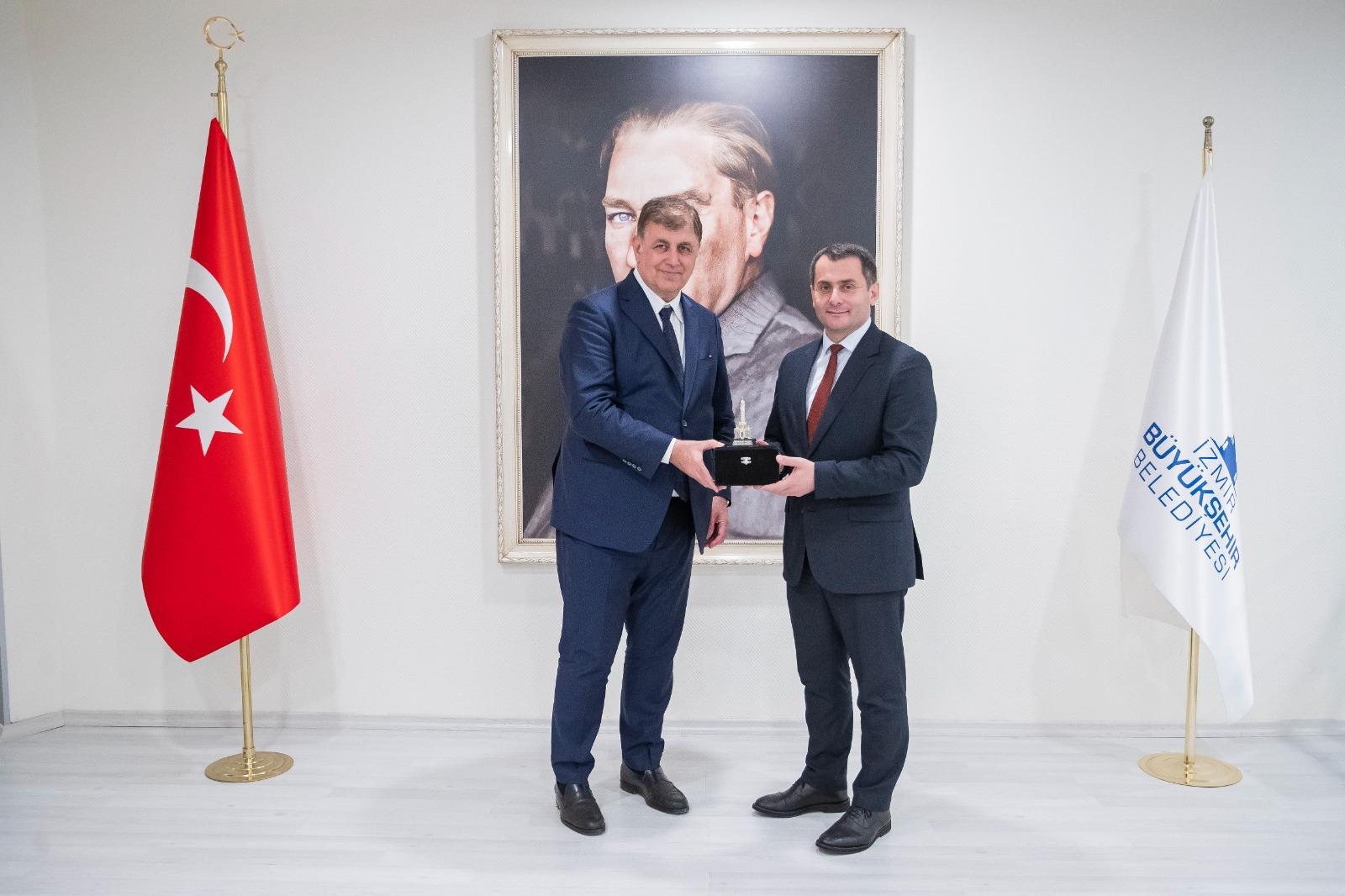 İzmir Büyükşehir Belediye Başkanı Dr. Cemil Tugay, Kuzey Makedonya İstanbul Başkonsolosu Idris Fazlioski ve beraberindeki heyeti makamında ağırladı. Kuzey Makedonya’dan Üsküp kenti ile kardeş şehir olan İzmir için iş birliklerine hazır olduklarını belirten Başkan Tugay, “Bizler daha yakın olmak, daha fazla ilişki kurmak istiyoruz. Bugünün şartlarında olması gereken dostluğu, iş birliğini, yakınlığı her boyutuyla kurmak ve yaşatmak bizim görevimiz” dedi.