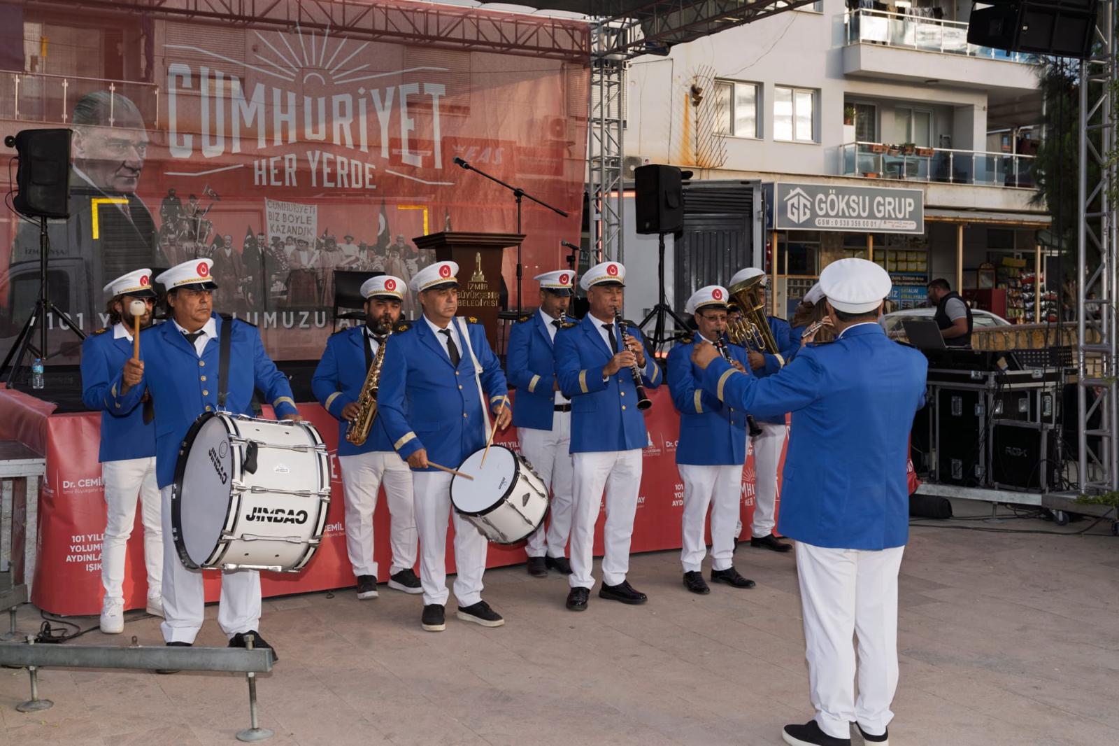Kutlamalar Dikili Belediyesi Bandosu’nun marşlarıyla başladı. Marşların ardından Halk Oyunları ekibi zeybek gösterisiyle izleyenleri büyüledi. Ardından sahneye İzmir Büyükşehir Belediyesi’nin Halk Müziği Orkestrası çıktı. Türk Halk Müziği’nin sevilen türkülerini seslendiren orkestra hareketli şarkılarla izleyenleri coşturdu.