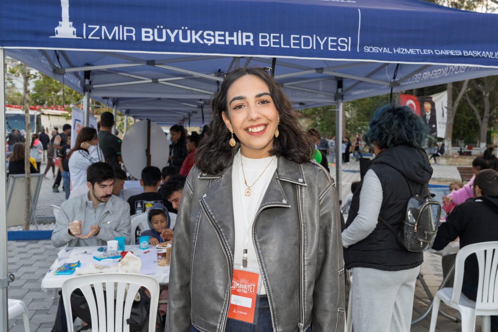İzmir Büyükşehir Belediyesi ekibi ve gönüllü gençler çocuklarla resim, el sanatları, yüz boyama gibi etkinlikler yaparak Cumhuriyet’in 101’inci yaşında unutulmaz anlar yaşattılar. Gönüllü gençlerden Aylin Karagöz, “Ben Mahallede Dayanışma Var projesinde aktif olarak görev alıyorum. Çocuklarla birlikte olmak çok güzel. Çocukları mutlu edebilmek çok güzel. Birçok çocuk burada ilk defa yüz boyama yapıyor. Bu heyecana ortak olmak bizi çok mutlu ediyor” diye konuştu.