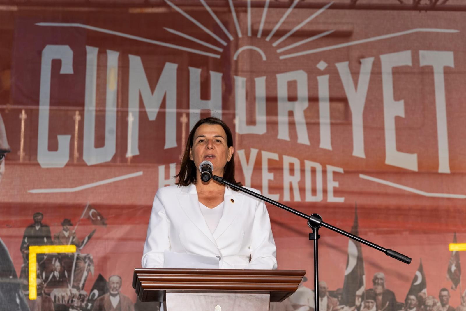 Etkinliğin açılış konuşmasını yapan Foça Belediye Başkanı Saniye Bora Fıçı, “Bugün ulu önderimiz Gazi Mustafa Kemal Atatürk’ün bizlere miras bıraktığı Cumhuriyet’in 101’inci yılını, Cumhuriyet’in aydınlık yüzü olan Foça’da büyük bir coşkuyla kutlamaktan onur duyuyoruz. Cumhuriyet eşitlik, özgürlük ve halk egemenliği demektir. Yaşasın Atatürk, yaşasın Cumhuriyet” diye konuştu.