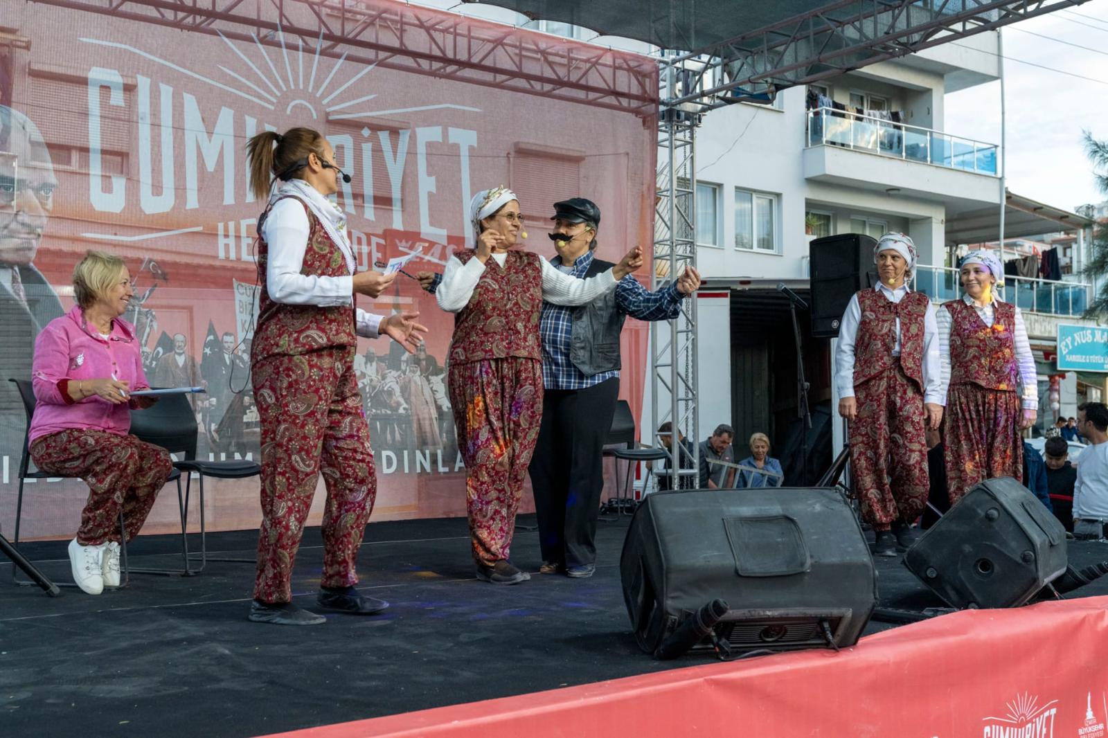 Cumhuriyet Bayramı’nın 101’inci yılı İzmir'de tüm görkemiyle kutlanıyor. İzmir Büyükşehir Belediyesi’nin “Cumhuriyet Her Yerde” sloganıyla kırsal ilçelerde organize ettiği 29 Ekim şenlikleri Foça Bağarası’nda devam etti.