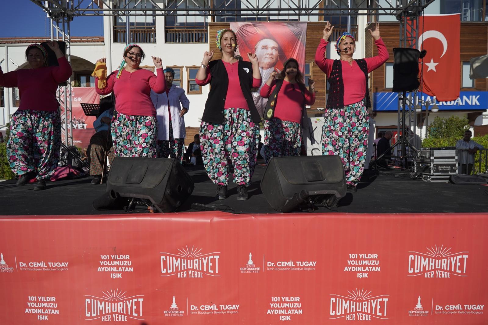 İzmir Büyükşehir Belediyesi’nin “Cumhuriyet Her Yerde” sloganıyla 19 kırsal ilçede 15 güne yayılacak şekilde organize ettiği Cumhuriyet Bayramı’nın 101’inci yılı kutlama şenlikleri Menderes’te devam etti. Çukuraltı sakinleri müzikten tiyatroya keyif dolu anlar yaşarken, çocuklar atölyelere katıldı. Menderes’te 7’den 70’e herkesi Cumhuriyet ruhu sardı.
