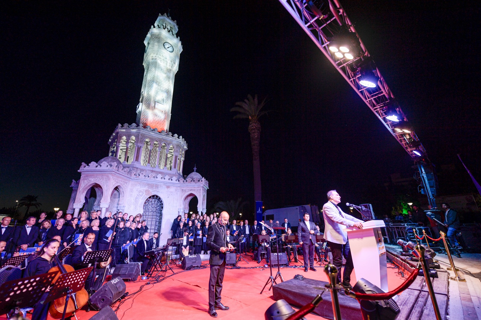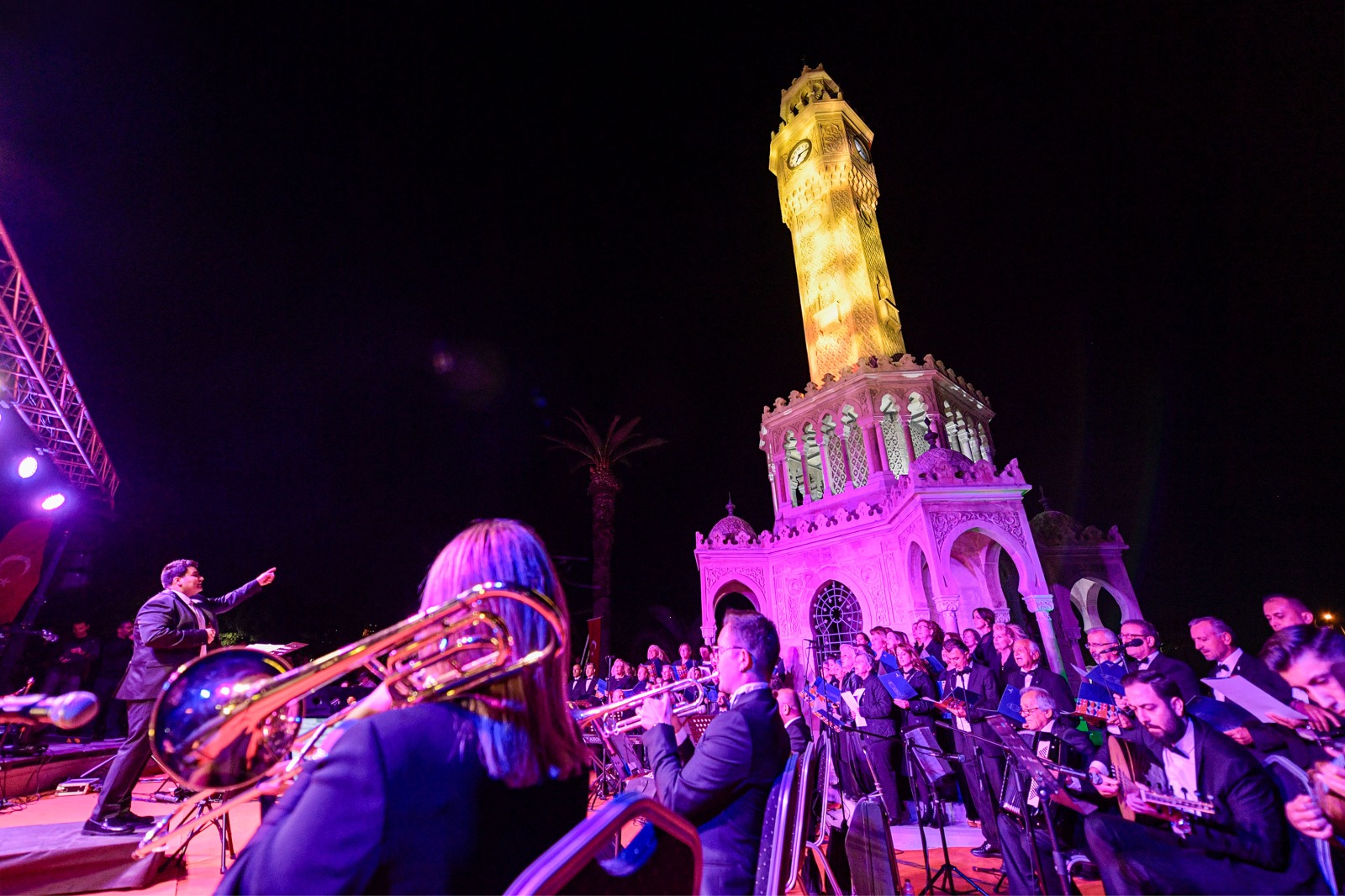 Cumhuriyet Bayramı’nın 101. yılı kapsamında düzenlenen konsere İzmir Büyükşehir Belediyesi Başkan Vekili Dr. Zafer Levent Yıldır, Genel Sekreter Yardımcısı Prof. Dr. Pınar Okyay ve yurttaşlar katıldı.