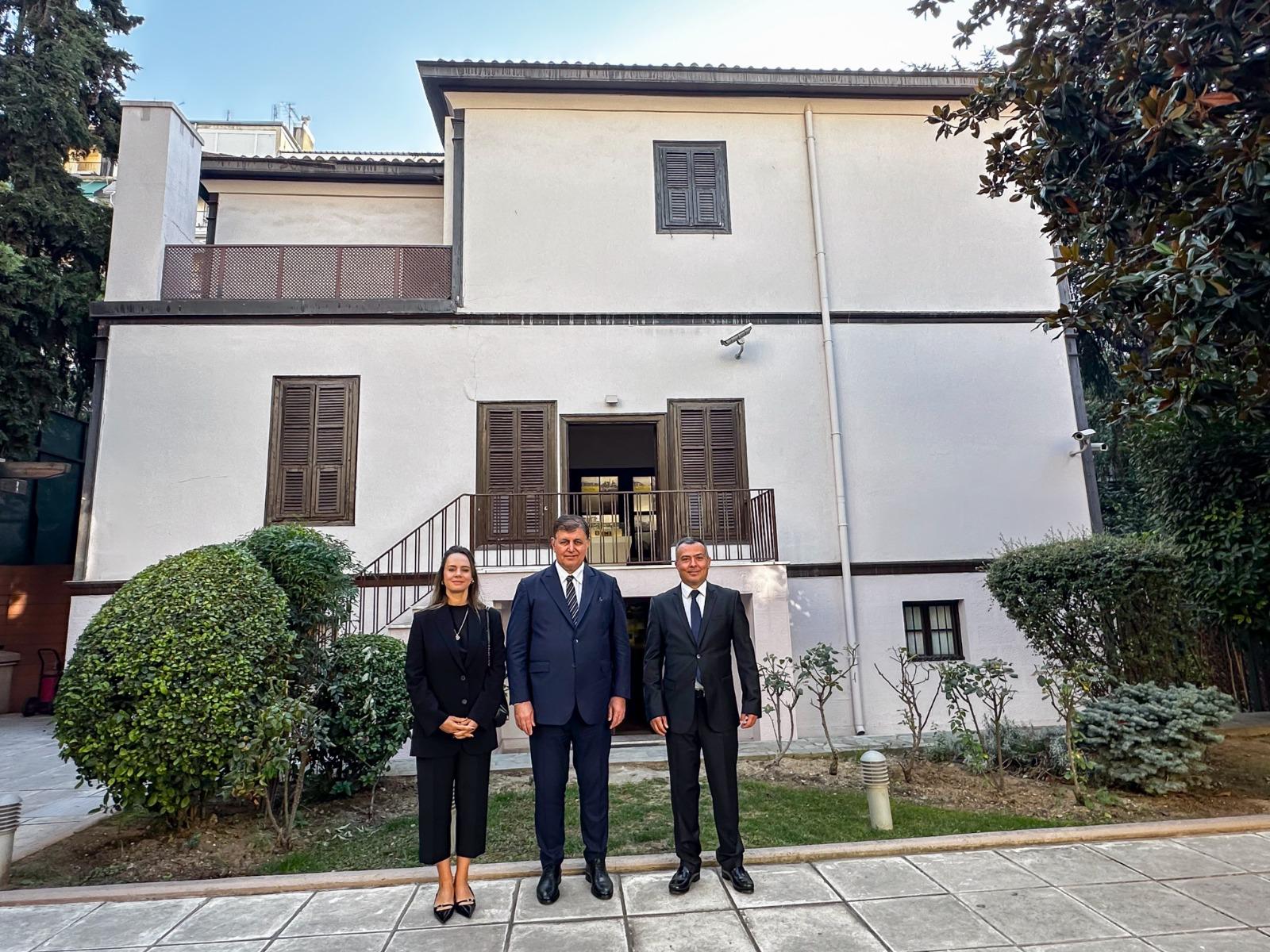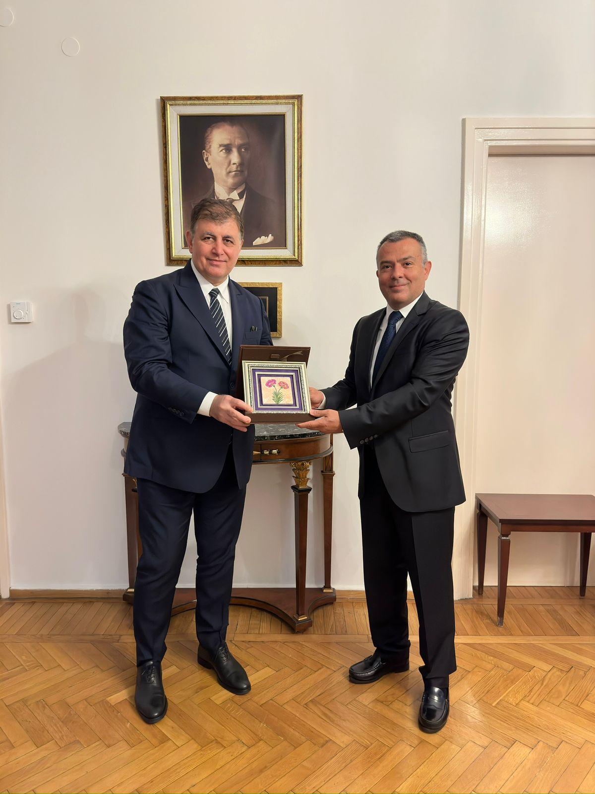 İzmir Büyükşehir Belediye Başkanı Dr. Cemil Tugay, İzmir ve Selanik arasında ekonomik, kültürel ve sosyal ilişkilerin geliştirilmesi için Selanik’i ziyaret etti. Ziyarette Başkan Dr. Cemil Tugay’a eşi Öznur Tugay, İzmir Büyükşehir Belediyesi Dış İlişkiler ve Turizm Dairesi Başkanı Gökçe Başkaya da eşlik etti. Programına Selanik Başkonsolosu Serkan Gedik ve Selanik’teki Atatürk Evi’ni ziyaret ederek başlayan Başkan Dr. Cemil Tugay, Selanik Belediye Başkanı Stelios Angeloudis ile bir araya geldi.