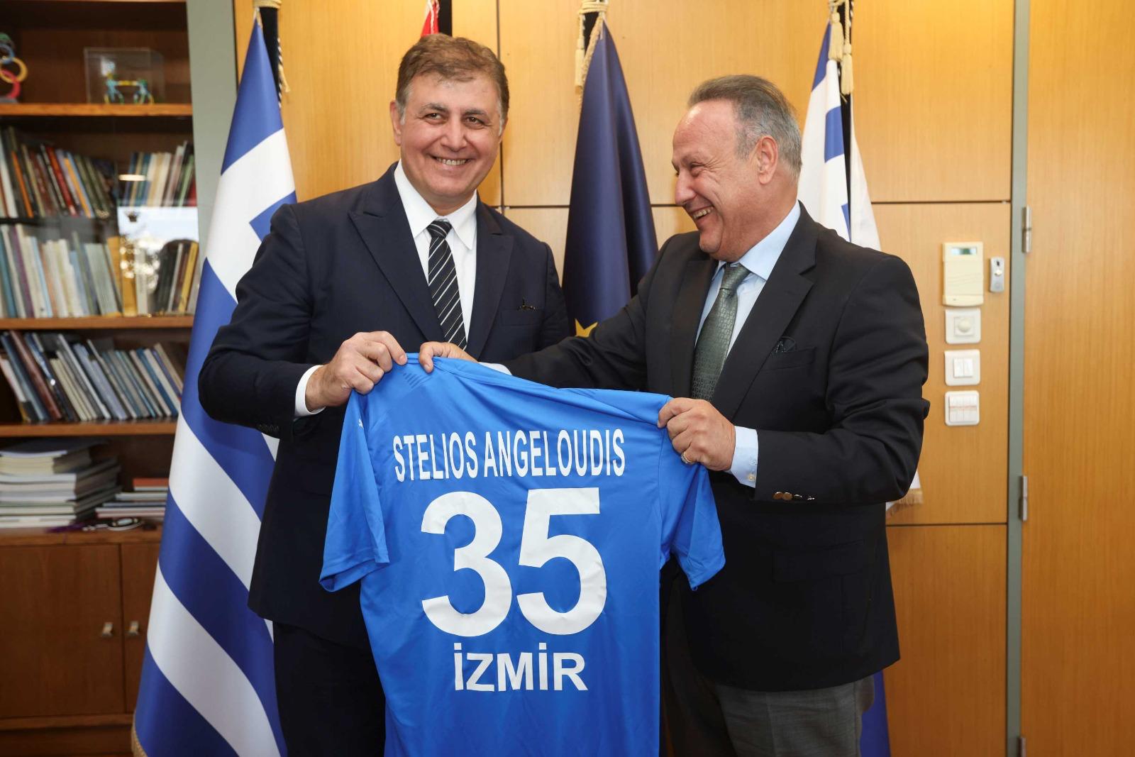 Belediye başkanı olmasının yanı sıra Yunan Olimpiyat Komitesi’nin başkan yardımcılığı görevini de sürdüren Stelios Angeloudis’in hentbola olan ilgisi nedeniyle, Süper Lig’de kadın ve erkek hentbol takımları bulunan İzmir Büyükşehir Belediyesi Spor Kulübü Hentbol takımı forması hediye edildi.
