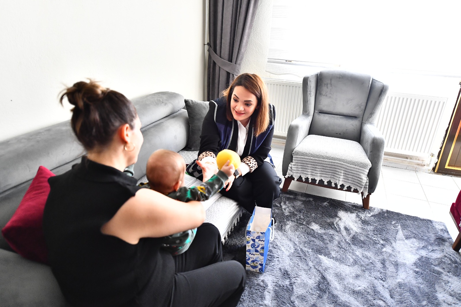Proje kapsamında Bayraklı Onur Mahallesi’ndeki Siğinç ailesini ziyaret eden ekipler hem anne hem bebek ile ilgilendi. Doğcan Siğinç ile Aynur Siğinç’in oğlu Kadir Demir Siğinç’e oyuncaklar götüren ekibin yöneticisi Sosyal Hizmetleri Dairesi Başkanlığı Kadın Çalışmaları Şube Müdürlüğü İzmir95 Erken Çocukluk Birimi Sorumlusu Deniz Devrim Fidan çalışmayla ilgili bilgiler verdi. Fidan, “0-3 yaş arası çocuğu olan ebeveynler ve ebeveyn olmayı düşünenlerle çalışıyoruz. Neler yapıyoruz, niçin 0-3 yaş? Beyin gelişiminin yüzde 80’inin tamamlandığı, bebeğin gelişiminin en hızlı gözlemlendiği, yaşam boyu kullanılacak temel becerilerin kazanıldığı dönem 0-3 yaş dönem. Bu dönemde ailelerin de kafalarında çok fazla soru oluyor. Ebeveynlerin yanında olduğumuzu göstermeye çalışıyoruz. İlk 3 yılda bebeğin gelişebilmesi için çocukların sevgi, ilgi, zengin bir dil çevresi gibi maliyeti olmayan, ebeveynin doğal kaynaklarına ihtiyaç duyduğu sürece ihtiyacı var. Biz de bunun için onlarla birlikte çalışıyoruz. İzmir’deki tüm bebekleri önemsiyoruz, aileleri önemsiyoruz. Onlar henüz doğmadan onların yanlarında olduğumuzu söylemek istiyoruz. İyi bir başlangıç her çocuğun hakkı diyoruz” dedi.