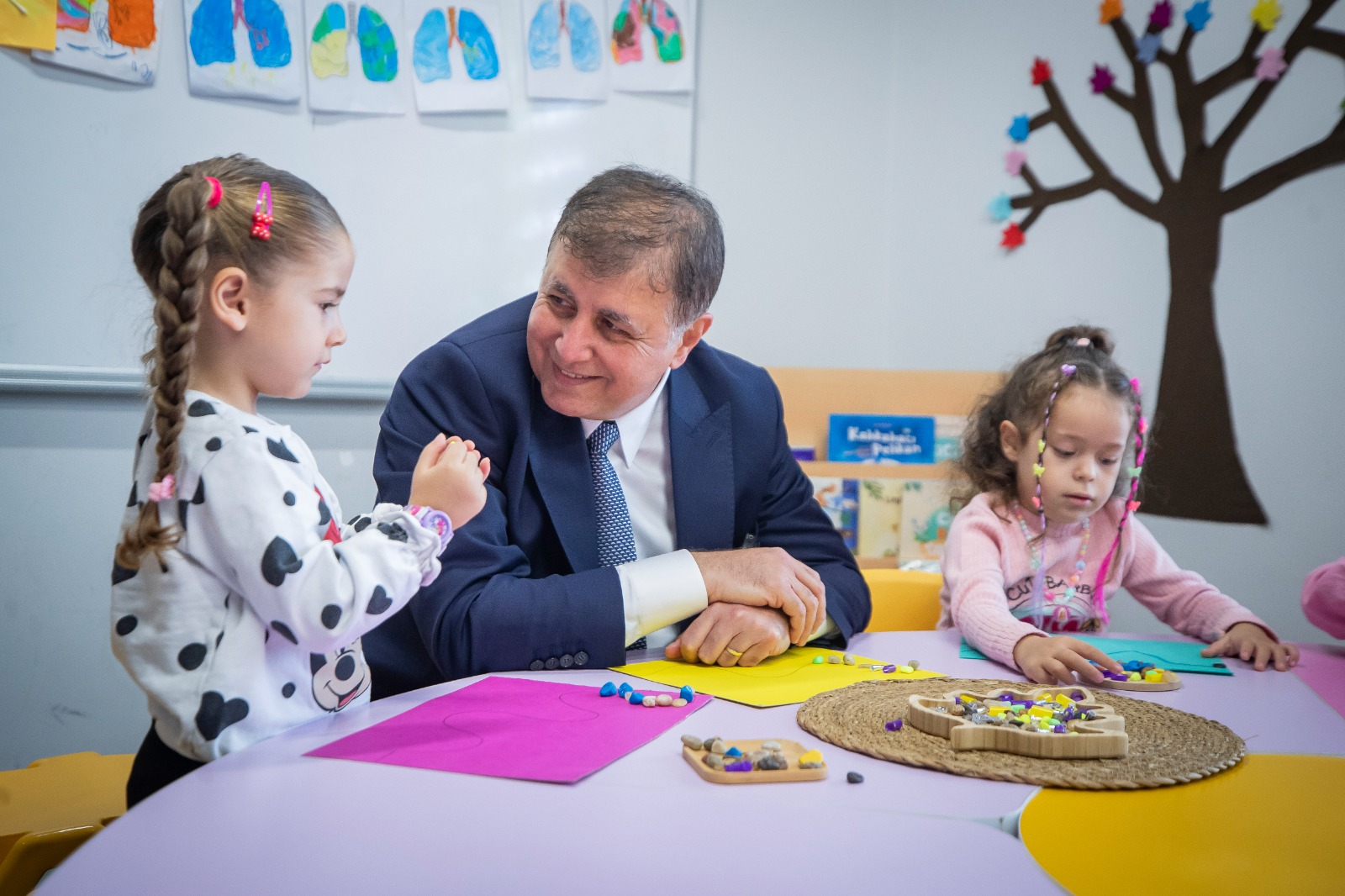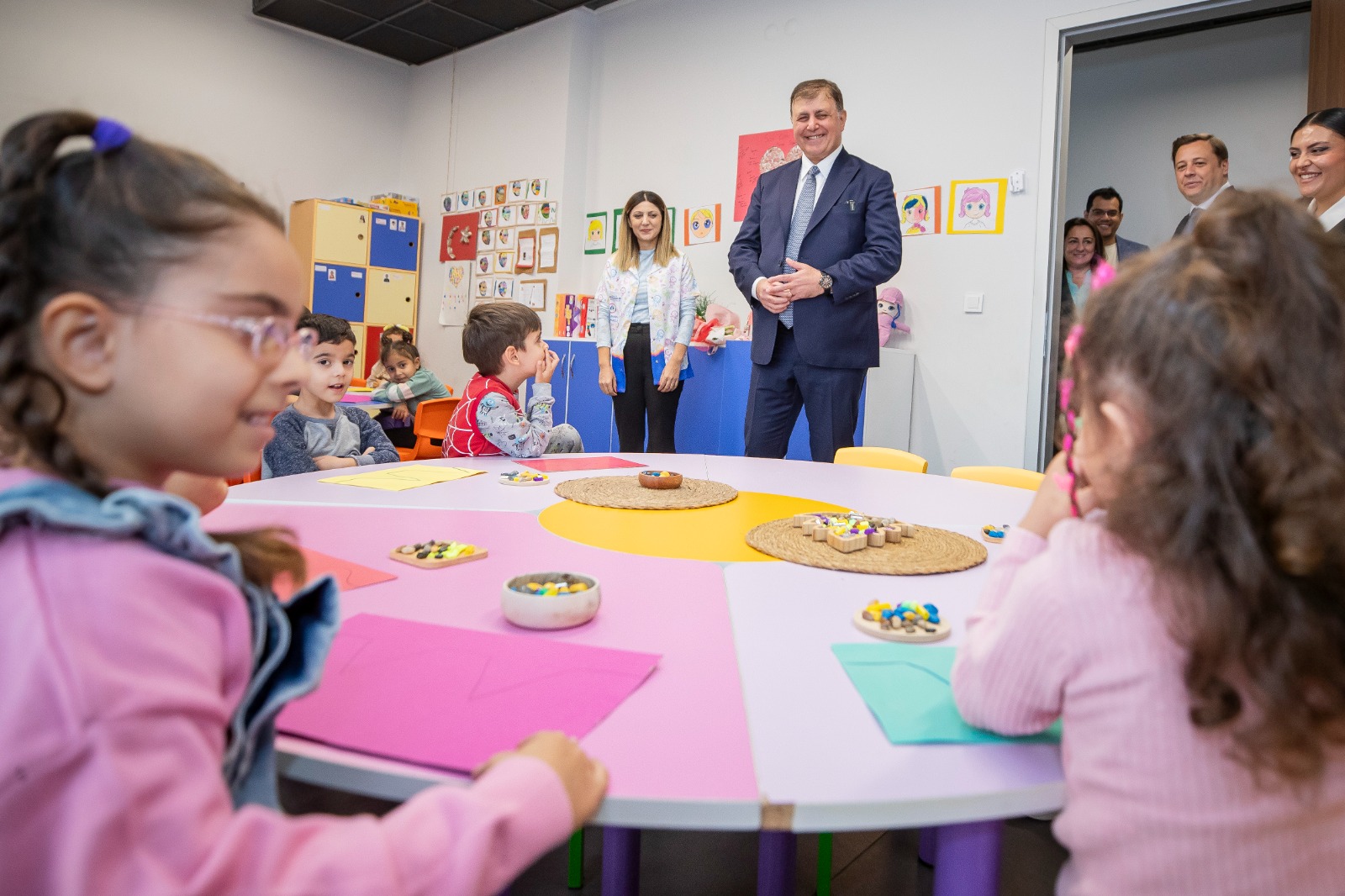 İzmir Büyükşehir Belediye Başkanı Dr. Cemil Tugay, İZELMAN Egekent Kreş ve Anaokulu Eğitim Merkezi’nde öğrenci ve öğretmenlerle bir araya geldi. Miniklerin oyun etkinliklerine katılan Başkan Tugay, öğrencilere hediyeler de verdi. Çocukların eğitim alma hakkını koruyarak okul ücretlerini yarıya düşürdüklerini belirten Başkan Tugay, önümüzdeki yıl kreş sayısını iki katına çıkaracaklarının müjdesini verdi.