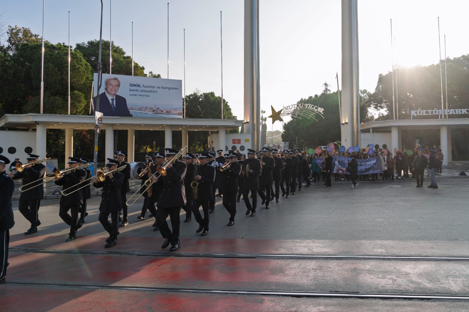 İzmir’in seçilmiş kadınları, 5 Aralık Türkiye Cumhuriyeti’nde Kadınlara Seçme ve Seçilme Hakkının Tanınması Günü nedeniyle İzmir Büyükşehir Belediyesi organizasyonu ile bir araya geldi. Kültürpark’tan Cumhuriyet Meydanı’na kadar bando eşliğinde yürüyen kadınlar, Atatürk Anıtı’na çelenk sundu. Kadınların renkli yürüyüşüne İzmirliler de alkışlarla destek verdi.