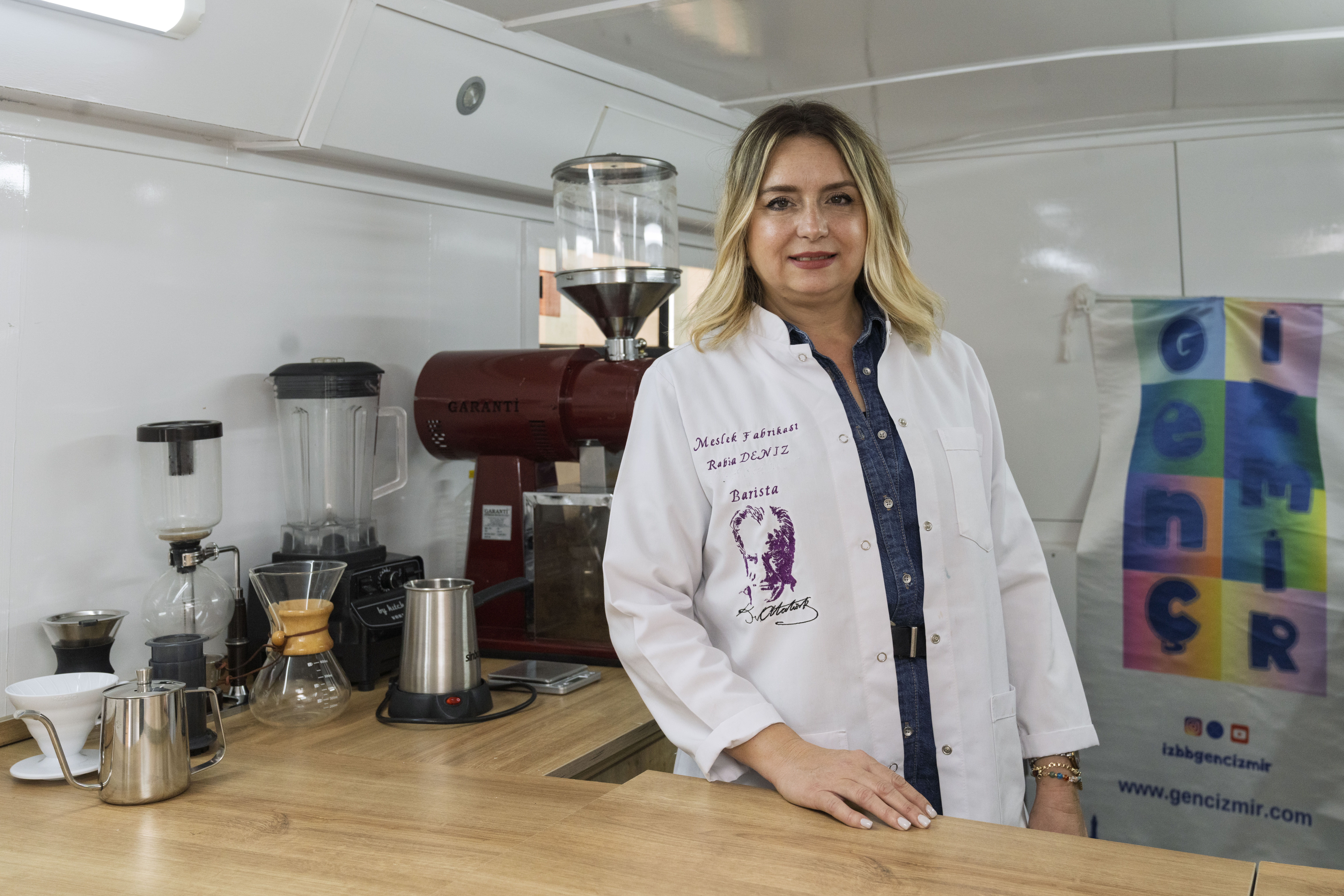 İzmir Büyükşehir Belediyesi’ne bağlı Genç İzmir Birimi bünyesinde eğitim şefliği görevini yürüten Berna Yurdusev, gençleri istihdama dahil etmek için mobil barista atölyesi düzenlediklerini belirterek “Şu an 30 katılımcımız var. Yedekler de var, talep de çok. Gençler burada hızlandırılmış barista eğitimi alıyorlar. Hem eğleniyorlar hem barista nasıl olunur öğreniyorlar. Dünya kahvelerine dair bilgi alıyorlar. Aşık Veysel Rekreasyon Alanı’nda başladık. Diğeri Çiğli Gençlik Merkezi’nde olacak” dedi.