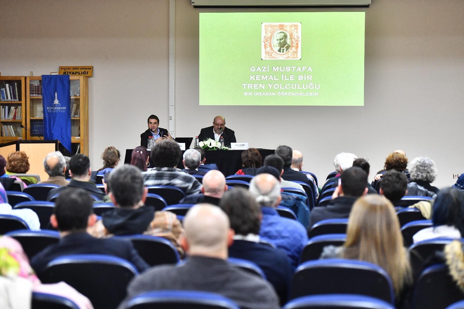 Osmantan Erkır ayrıca “Gazi Mustafa Kemal ile Bir Tren Yolculuğu” başlıklı bir sunum gerçekleştirdi. Bir saati aşkın süren sunum büyük ilgi topladı. Atatürk’ün 30 Eylül 1929 günü Ankara’ya yaptığı seyahatte özel vagonundaki sekiz misafir kimlerdi, neler konuşuldu, gramofonda hangi şarkılar dinlendi, bu yolculukta neler yaşandı gibi sorular sunumla birlikte yanıt buldu. Erkır, yolculuktan tam 90 yıl sonra bir sahafta bulduğu çok özel bir belgenin ışığında dinleyenleri Atatürk’le bir tren yolculuğuna çıkardı. İzmirliler, sunumun sonunda Erkır’ı ayakta alkışladı ve gözyaşlarına hakim olamadı.