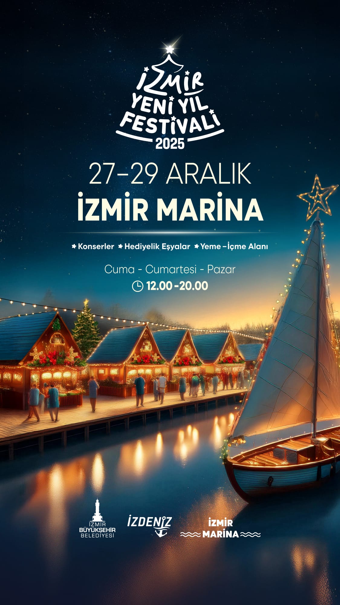 İzmir Büyükşehir Belediyesi iştiraki İZDENİZ, 2025 yılının bitmesine sayılı günler kala İzmirlileri 27-29 Aralık tarihleri arasında Yeni Yıl Festivali ile buluşturuyor. 7 Aralık’tan bu yana Kültürpark’ta devam eden Yeni Yıl Festivali’nin bir ayağı olarak İzmir Marina'da düzenlenecek renkli etkinlik kapsamında vatandaşlar hem hediye alışverişi yapabilecek hem de keyifli vakit geçirecek.