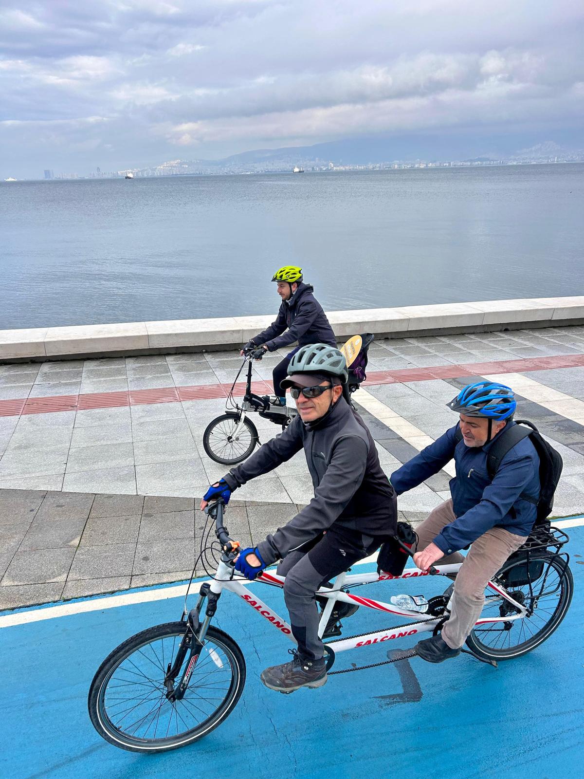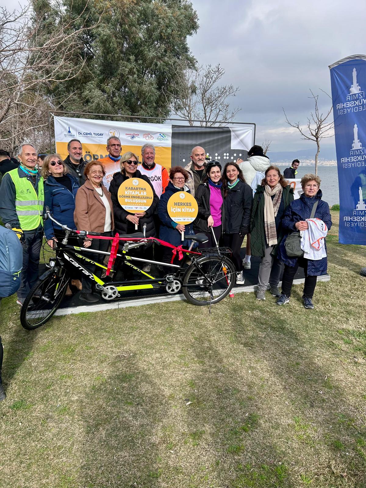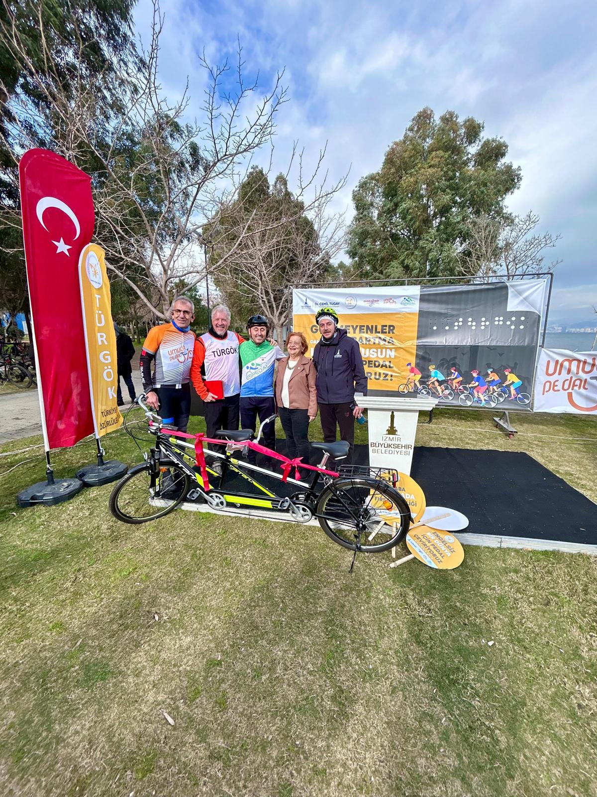 İzmir Büyükşehir Belediye Başkanı Dr. Cemil Tugay'ın toplumun bütün kesimleri için tüm olanakların en üst düzeyde kullanılması talimatı doğrultusunda çalışmalarına devam eden Gençlik ve Spor Hizmetleri Dairesi Başkanlığı'na bağlı Spor Çalışmaları Şube Müdürlüğü, TÜRGÖK (Türkiye Görme Özürlüler Kitaplığı Derneği) iş birliğiyle bisiklet turu düzenledi. Farkındalık oluşturma hedefiyle gerçekleştirilen sürüşe katılan gönüllüler, iki kişinin aynı anda sürebilmesini sağlayan tandem bisikletlere bir görme engelli birey ile birlikte binerek İzmir'in sahil şeridinde tur attı. Yol boyunca görme engellilere sesli olarak anlatım yapıldı. Cumhuriyet Meydanı’nda toplanan bisikletliler, buradaki ısınma hareketlerinin ardından sürüşe başladı. Tamamı bisiklet yolunda gerçekleştirilen sürüş, İnciraltı Engelliler Parkı’nda sona erdi.