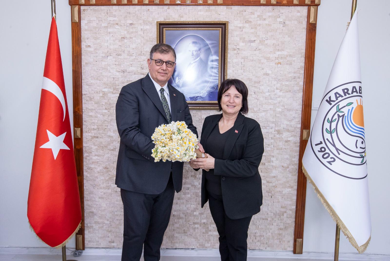 Karaburun Belediye Başkanı İlkay Girgin Erdoğan, Başkan Cemil Tugay’ı ilçelerinde ağırlamaktan büyük mutluluk duyduklarını belirterek, “Büyükşehir bürokratlarımızla bir arada, iletişim halinde uyumlu bir şekilde çalışıyoruz. Yarımadanın sorunlarını kendi sorunlarınız olarak görüp bizimle beraber hareket ettiğiniz için çok mutluyuz, teşekkür ediyoruz” diye konuştu.
