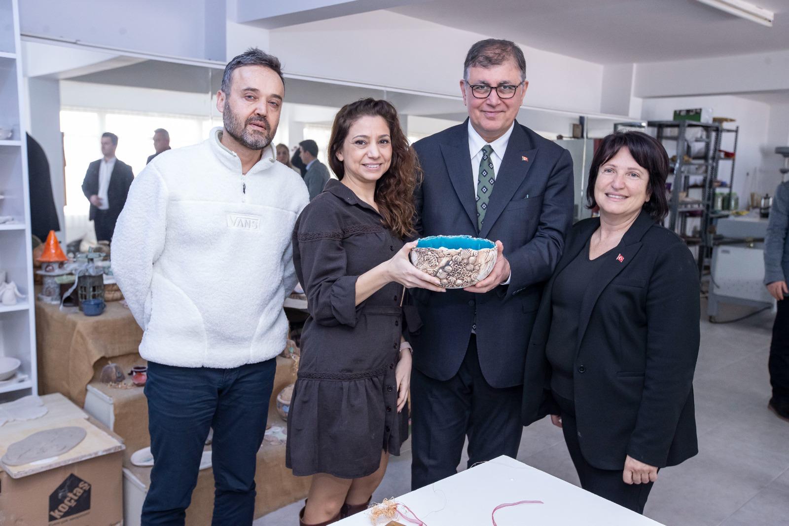 Karaburun programı kapsamında belediyenin seramik atölyesini gezen Başkan Tugay, ardından CHP Karaburun İlçe Başkanlığını ziyaret etti.
