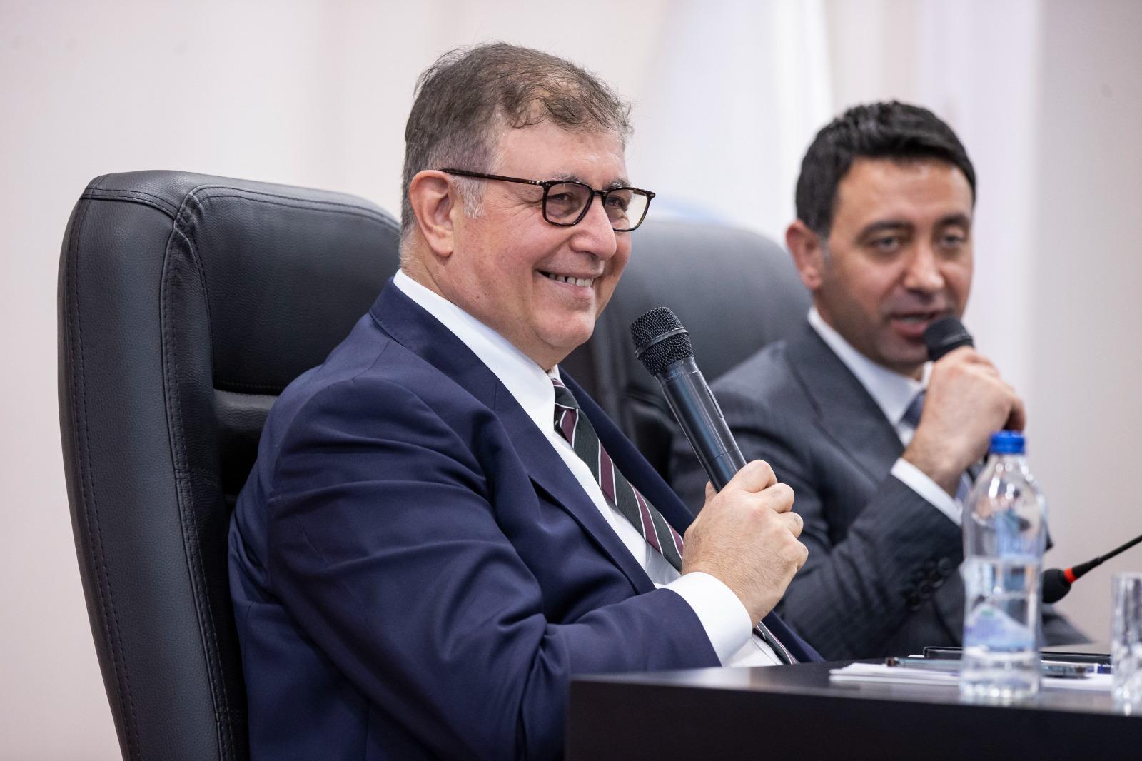 Çeşitli suçlamalara ve iftiralara da maruz kaldıklarını belirten Başkan Dr. Cemil Tugay, “Olumsuz algı kampanyaları yürütülüyor. Bizler çalışkan, temiz, namuslu, işini yapmak için sahada mücadele eden insanlarız. Şehirleri, tüm ülkeyi mahvettiler. Bütün bunlarla başa çıkmaya çalışıyoruz. Yerel seçim yapıldı. Sizler muhtar oldunuz. Ben belediye başkanı oldum. Önümüzdeki 4 yıl boyunca birlikte şehrimizin sorunları ile ilgili çalışacağız. Birbirimize yardımcı olmayı amaçlayan bir tavırla bu yolu yürüyelim. Buna ihtiyacımız var” dedi.