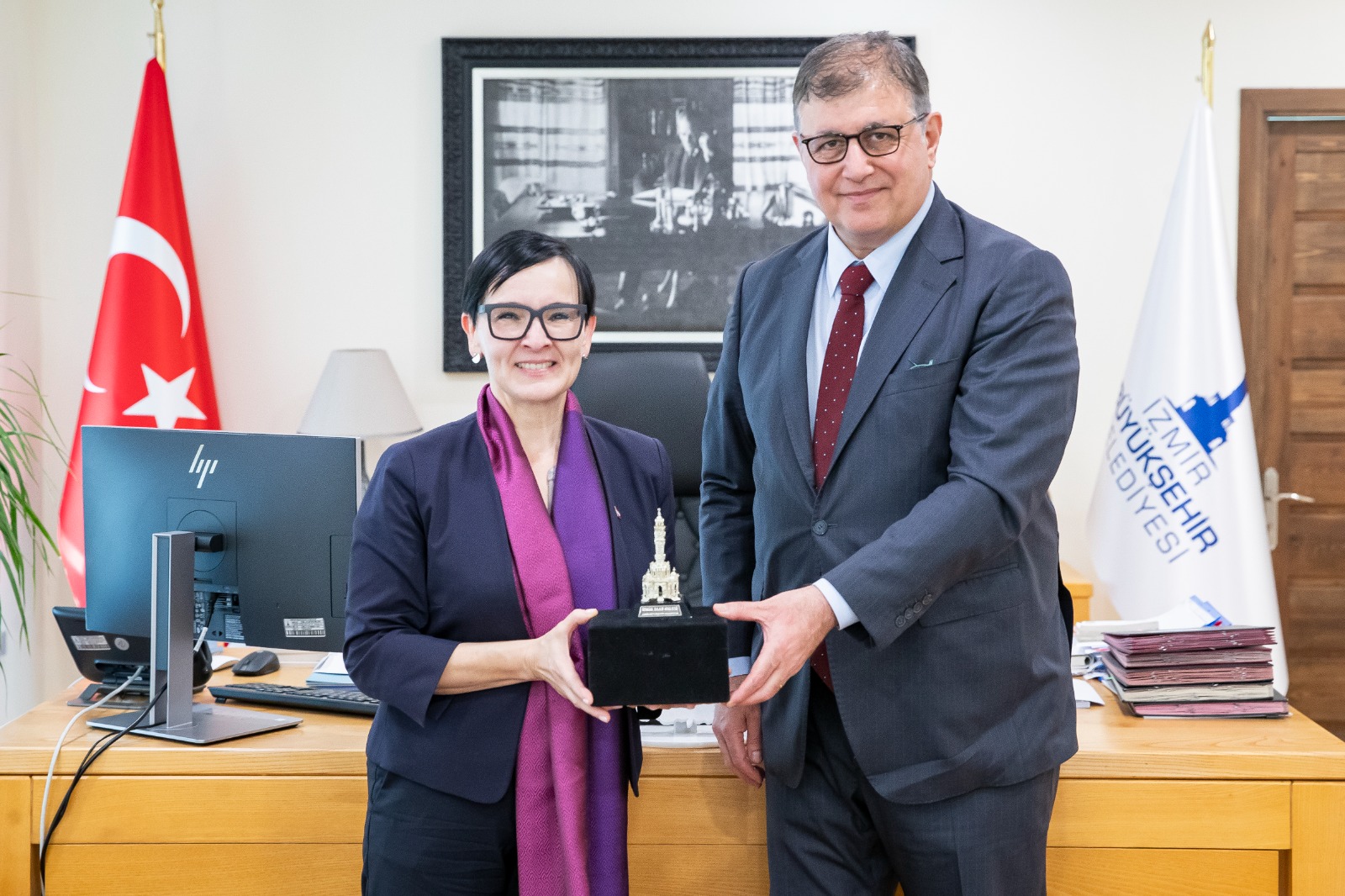 İzmir Büyükşehir Belediye Başkanı Dr. Cemil Tugay, Avusturya Büyükelçisi Gabriele Juen’i makamında ağırladı. Buluşmada özellikle yeşil ve akıllı kentler, atık yönetimi gibi çevre ile ilgili konularda fikir alışverişi ve iş birliği konuları gündeme geldi.
