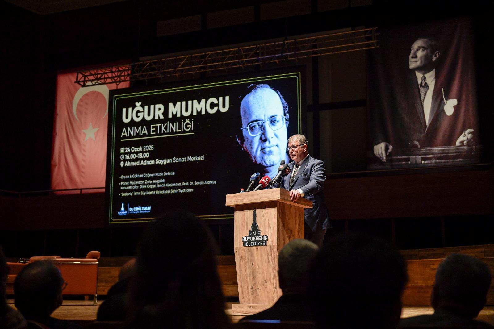 İzmir Büyükşehir Belediyesi ve İzmir Gazeteciler Cemiyeti, Türk basınının usta ve korkusuz kalemi araştırmacı-gazeteci ve yazar Uğur Mumcu’yu katledilişinin 32’nci yılında Ahmed Adnan Saygın Sanat Merkezi’nde (AASSM) anma töreni düzenledi. Törene İzmir Büyükşehir Belediye Başkanı Dr. Cemil Tugay’ın yanı sıra Cumhuriyet Halk Partisi (CHP) İzmir İl Başkanı Şenol Aslanoğlu, CHP İzmir Milletvekili Ednan Arslan, Karabağlar Belediye Başkanı Helil İnay Kınay, Gaziemir Belediye Başkanı Ünal Işık, İzmir Gazeteciler Cemiyeti Başkanı Dilek Gappi, Yaşar Üniversitesi İletişim Fakültesi Dekanı Prof. Dr. Sevda Alankuş, Cumhuriyet Gazetesi Ege Bölge Temsilcisi Mehmet Şakir Örs, Türk basınının usta gazetecilerinden Zafer Arapkirli ve İsmail Küçükkaya başta olmak üzere ulusal ve yerel basın temsilcileri, akademisyenler, sivil toplum kuruluşu temsilcileri ve çok sayıda İzmirli katıldı.