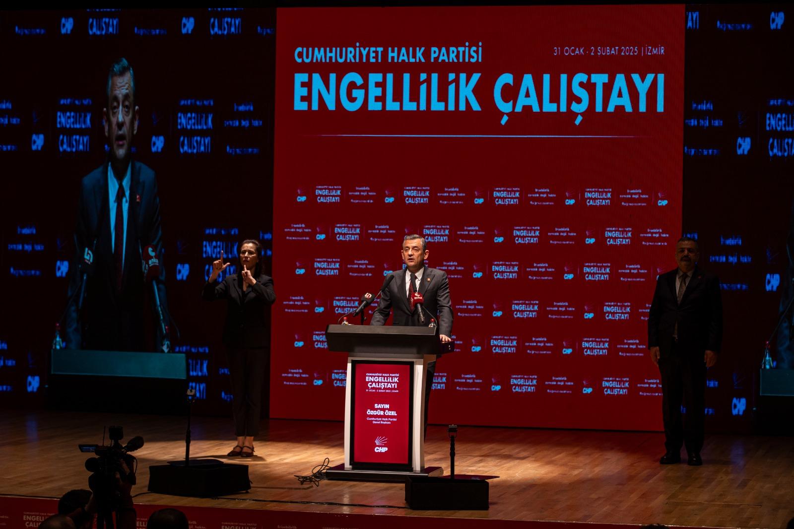 İzmir’in ev sahipliği yaptığı üç günlük Engellilik Çalıştayı, CHP Genel Başkanı Özgür Özel’in katılımıyla Ahmed Adnan Saygun Sanat Merkezi’nde devam etti. CHP Genel Başkan Yardımcıları, milletvekilleri, 14 büyükşehir, 21 il ve İzmir ilçe belediyelerinin engelli alanında çalışmalar yürüten birim yöneticileri, sivil toplum kuruluşu temsilcileri ile çok sayıda engellinin katıldığı çalıştayda engelli vatandaşların taleplerinin anlatıldığı bir video da ekrana yansıtıldı. Çalıştayın açılış konuşmasını yapan CHP Genel Başkanı Özgür Özel, İzmir Büyükşehir Belediye Başkanı Dr. Cemil Tugay’ın İzmir’i engelsiz şehir yapma çalışmalarını titizlikle sürdürdüğünü söyledi. CHP iktidarında engellilere yönelik yapılacak çalışmaların müjdesini veren Özel, başında engelli bir bakanın olacağı güçlü bütçesi olan, icracı Engelli Bakanlığı’nın kurulacağını kaydetti.