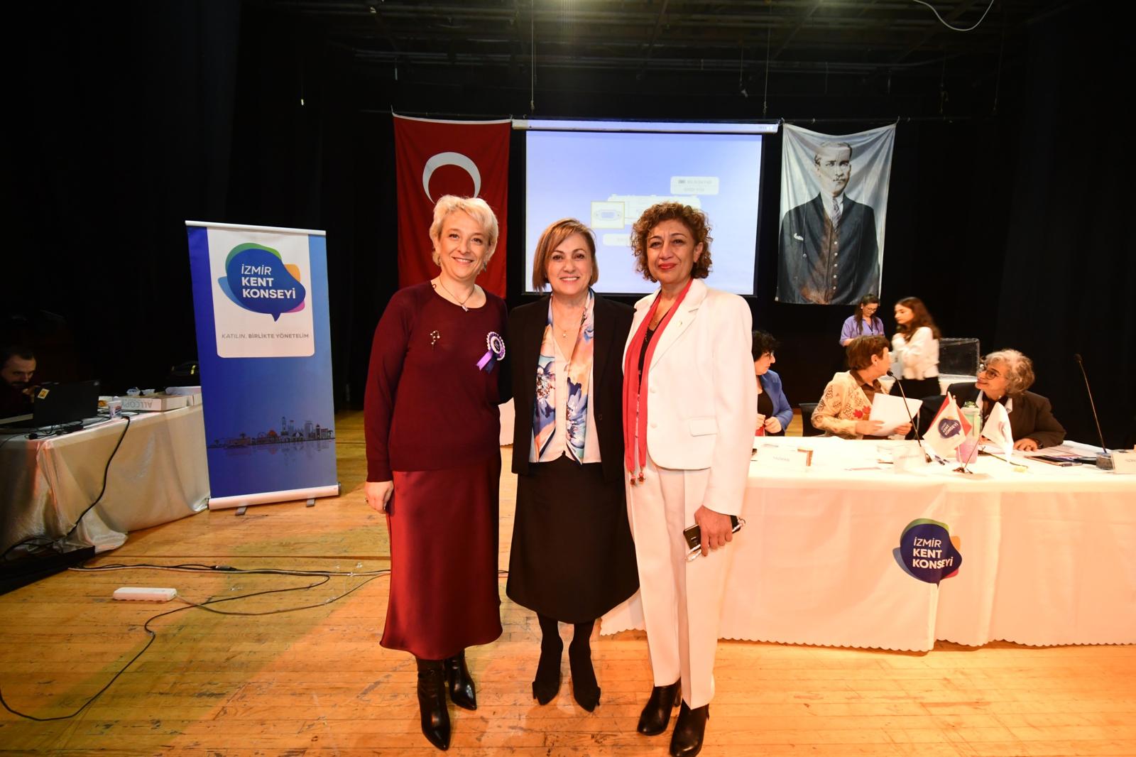 İzmir Büyükşehir Belediye Başkanı Dr. Cemil Tugay'ı temsilen genel kurula katılan İzmir Büyükşehir Belediyesi Meclis Üyesi Nurcan Adıgüzel ise İzmir Büyükşehir Belediyesi olarak kadınların her alanda güçlü olması için çalıştıklarını, sivil toplum örgütllerinin katılımcı yaklaşımlarından mutluluk duyduklarını, İzmir’in kadın dostu bir kent olduğunu belirtti. Programın sonunda, yeni seçilen Izmir Kent Konseyi Kadın Meclisi Başkanı Banu Ufacık da kadın hakları için hep birlikte mücadele edeceklerini ifade etti.