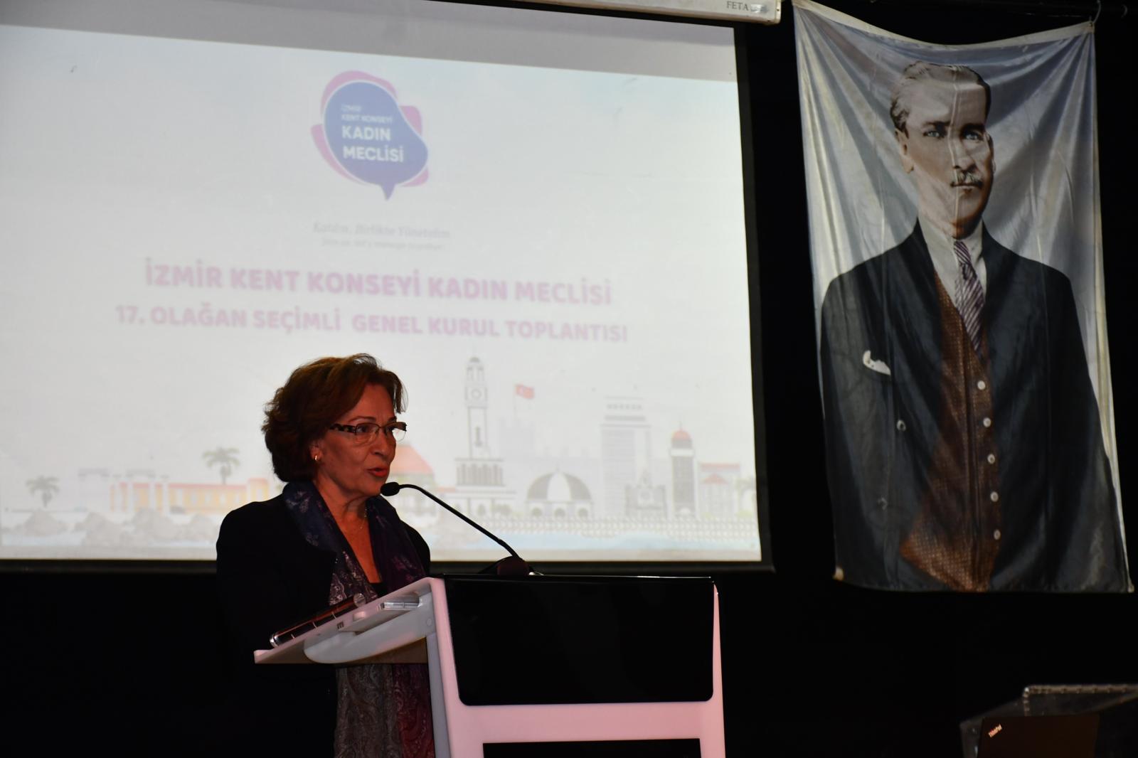 Genel kurulun açılış konuşmasını yapan İzmir Kent Konseyi Başkanı Avukat Nilay Kökkılınç, kadın hakkının insan hakkı olduğunu belirterek, “Cumhuriyetimizin kurucusu Mustafa Kemal Atatürk'e kadınlara tanıdığı seçme ve seçilme hakkı ile Cumhuriyet kazanımı olam tüm medeni haklar için minnet duyuyoruz. İzmir Kent Konseyi olarak kadın haklarına yönelik sivil toplum örgütleri ile birlikte çok çalışıyoruz. Karar organlarında eşit temsiliyeti konsey genel kurulunda aldığımız bir karar ile kadın ve erkek ard arda gelecek şekilde fermuar sistemi ile gerçekleştiriyoruz. Bu konuda örnek olduğumuzu doüşünüyoruz” dedi.