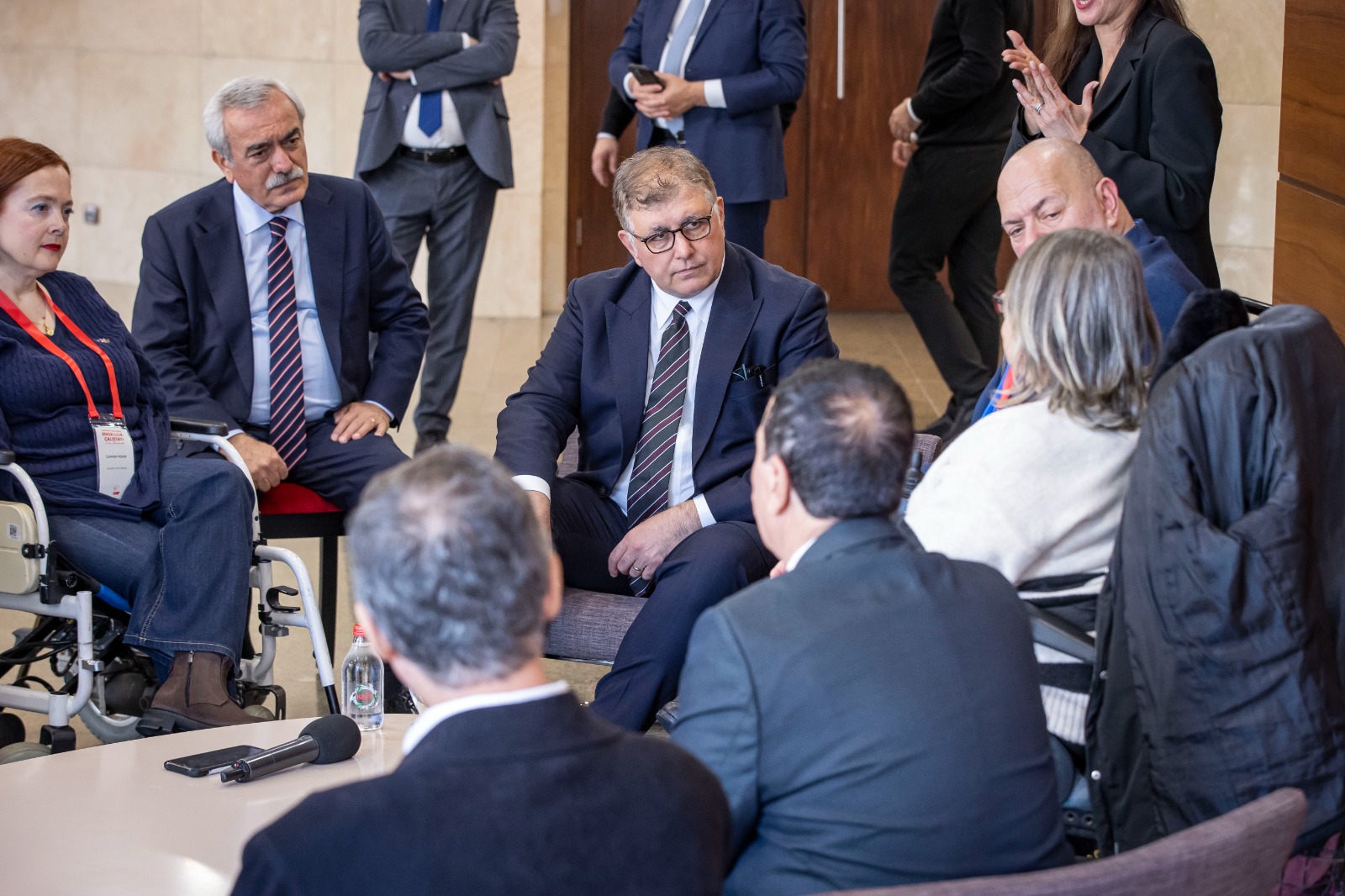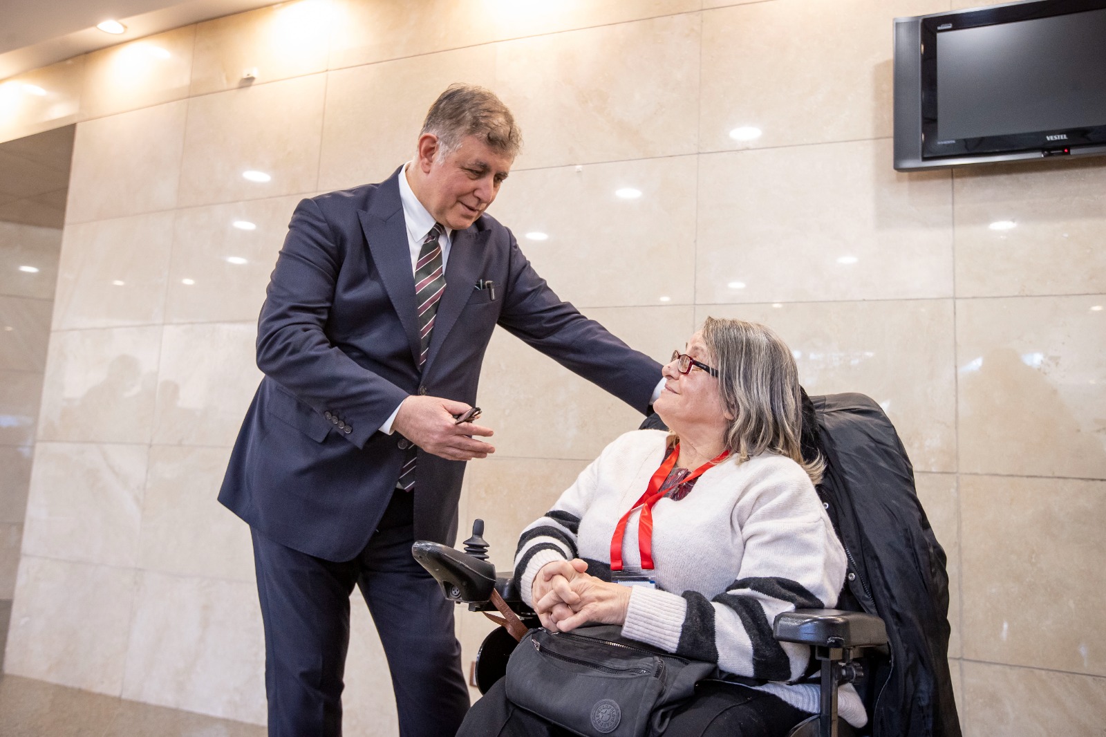 İzmir Büyükşehir Belediye Başkanı Dr. Cemil Tugay, Engellilik Çalıştayı’nda engelli yurttaşlarla bir araya gelerek talepleri dinledi. Bebeklerinin ağlama sesini duyamayan bir ailenin titreşimli cihaz talebi üzerine “Hoş Geldin Bebek Seti” içine işitme engelli ebeveynler için özel titreşimli cihaz eklenmesi talimatını veren Başkan Tugay, tüm engel gruplarının talep ve sorunlarının irdeleneceği bir Engelli Konseyi kuracaklarını söyledi.