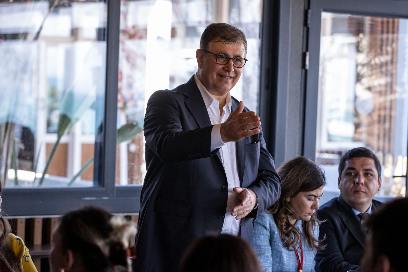 İzmir Büyükşehir Belediye Başkanı Dr. Cemil Tugay, "İnsanlara İzmir ile ilgili kötü şeyler söyleyerek İzmir'i kötülüyorlar ama ne hikmetse İzmir'de insanlar mutlu, özgür, hoşgörü içinde. İzmir'i bozmaya çalışan bütün güçlere karşı İzmir Türkiye'nin en düzgün şehirlerinden biri. Görevimiz, yerel hizmetleri çok daha iyi hale getirmek. Bunu da yapıyoruz zaten. İki aydır 3 milyar lira paramızı kestiler. 3 milyar, üç tane Karşıyaka Stadı demek. Sayısız anaokulu, sosyal tesis demek ama biz hizmetlerimize devam ediyoruz. İzmir Büyükşehir Belediyesi ve ilçe belediyeleri, kendi güçleri ve inançlı yöneticileri ile bunları yapacak. Neticede algı için sosyal medyayı kullanıyorlar. Medya zaten malum ama bizim gerçek bilgiye ihtiyacımız var" diye konuştu.