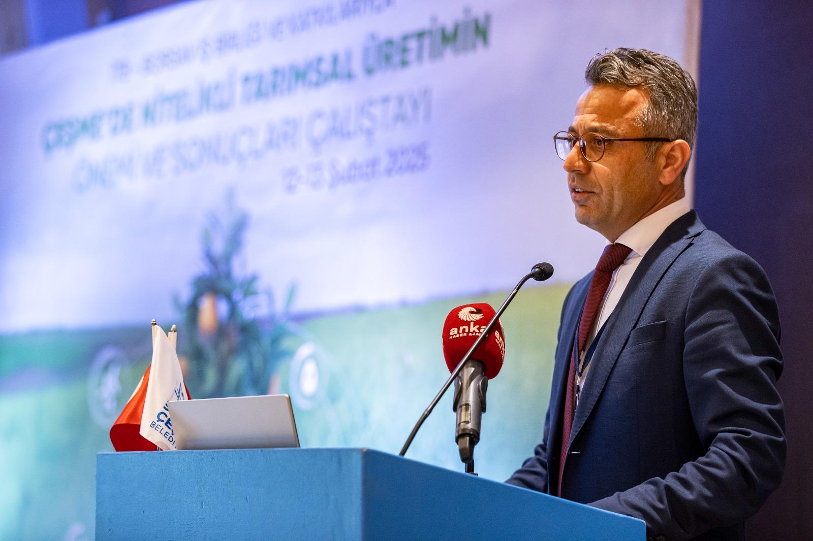 İzmir Büyükşehir Belediye Başkanı Dr. Cemil Tugay, Çeşme Belediyesi’nin İzmir Ticaret Borsası ve İzmir Ticaret Borsası Eğitim, Kültür ve Sosyal Entegrasyon Vakfı’nın (BORSAV) katkılarıyla düzenlediği “Çeşme’de Nitelikli Tarımsal Üretimin Önemi ve Sonuçları Çalıştayı’na katıldı. Boyalık Otel’de düzenlenen çalıştaya Başkan Dr. Cemil Tugay’ın yanı sıra Çeşme Belediye Başkanı Lal Denizli, Cumhuriyet Halk Partisi geçmiş dönem Milletvekili Prof. Dr. Kamil Okyay Sındır, Çeşme İlçe Tarım ve Orman Müdürü Ahmet Keçeci, İzmir Ticaret Borsası Genel Sekreteri Dr. Erçin Güdücü, İzmir Ticaret Borsası Yönetim Kurulu Üyesi İsmail Emin Kentli, İzmir Büyükşehir Belediyesi Genel Sekreteri Ramazan Tezcan ve Büyükşehir bürokratları, sivil toplum kuruluşları, akademisyenler, kooperatifler, siyasi parti temsilcileri ve çok sayıda üretici katıldı.