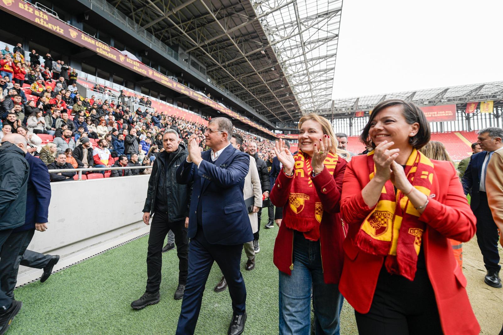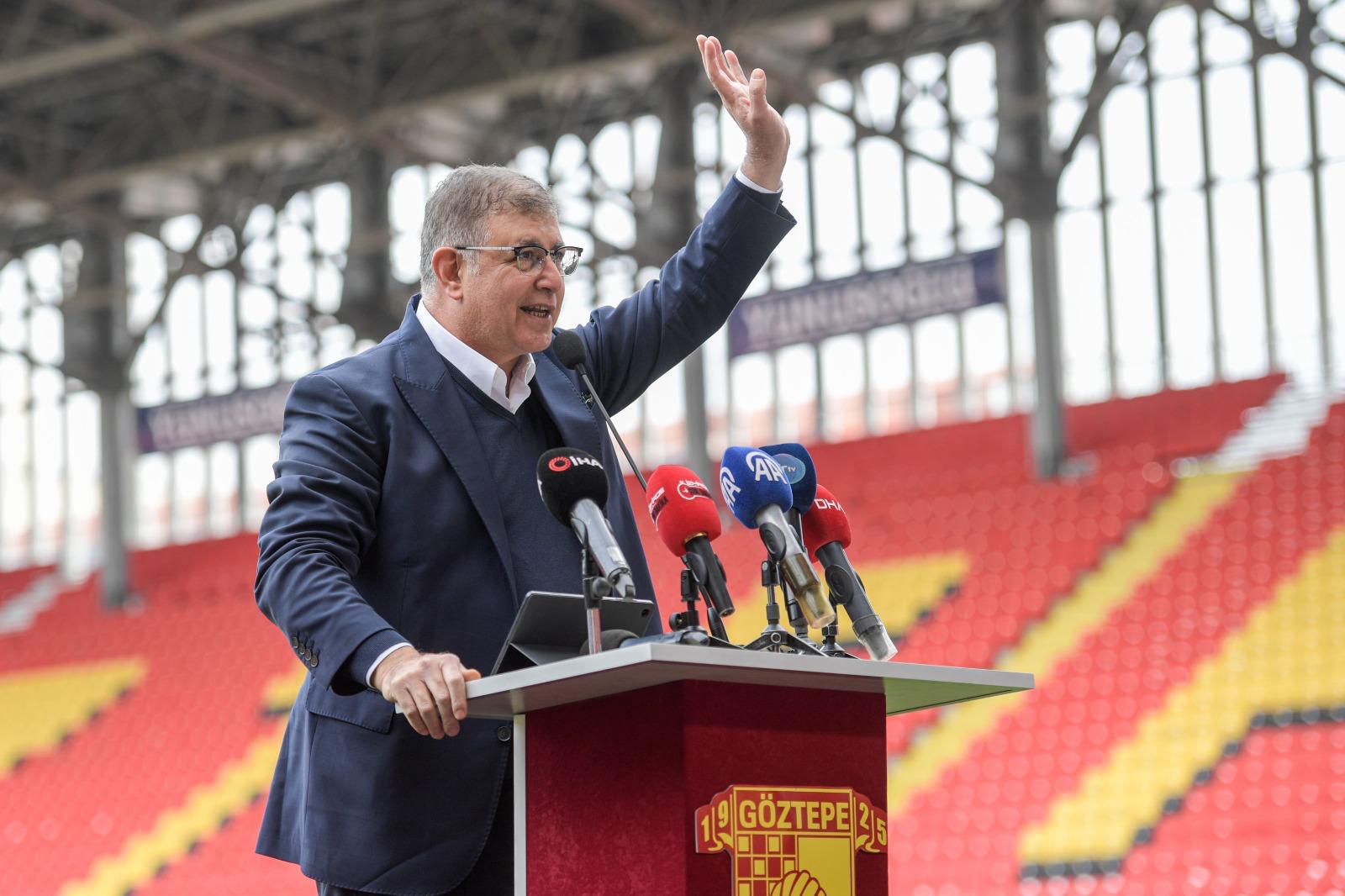 Tanıtım toplantısında konuşan İzmir Büyükşehir Belediye Başkanı Dr. Cemil Tugay, “Mehmet Sepil gibi benim de çocukluğum birkaç yüz metre ileride geçti. Göztepe'nin şanlı tarihinin bir bölümünü yakından izleme, gözlemleme ve başarılarına şahit olma şansı buldum. Göztepe, İzmir'in spor tarihinde yeri doldurulamaz bir paya sahip. Aynı zamanda İzmir'in Süper Lig’deki tek temsilcisi. 16 branşta pek çok amatör sporcunun yetişmesine katkı veren bu kulübün başarılarıyla hepimiz gurur duyuyoruz. Göztepe'nin sporcuları, sporcu gençleri hepimizin gururu, İzmir'in gururu. O yüzden 100. yılınız kutlu olsun. Göztepe kültürünün ne olduğunu çok iyi bilen bir İzmirli olarak, İzmir Büyükşehir Belediyesi'nin bugünkü başkanı olarak Atatürk'ün izinde olan Göztepelileri selamlıyorum. Nice yüzyıllara sevgili Göztepeliler. Her zaman yanınızda olduğumuzu unutmayın. Sizleri seviyoruz” diye konuştu.