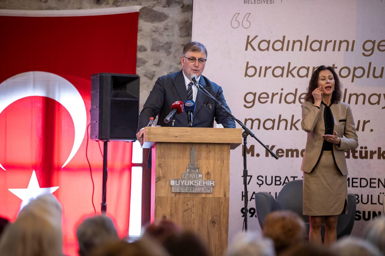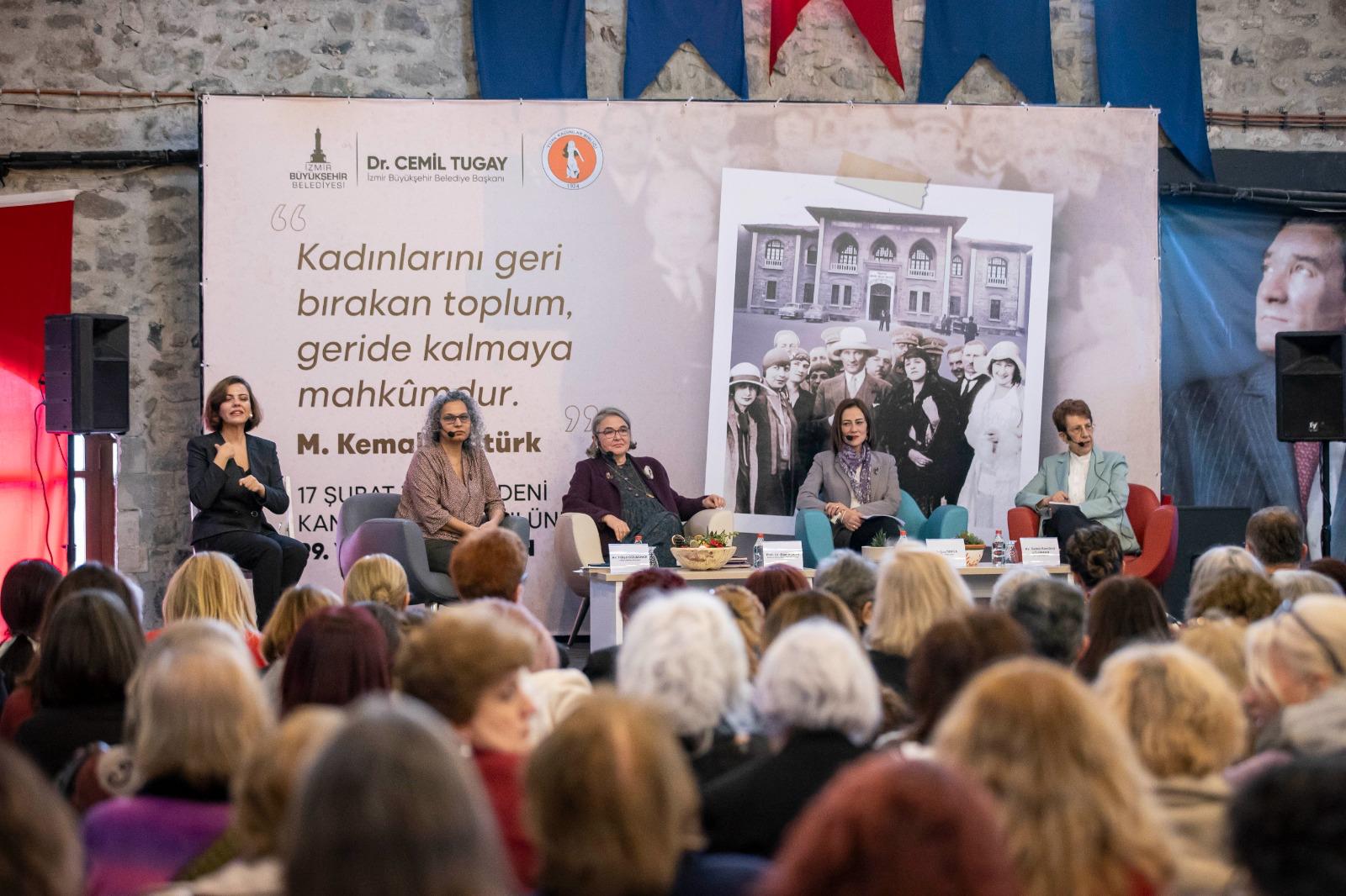 Türk Kadınlar Birliği İzmir Şube Başkanı Sevtap Şirin ise şöyle konuştu: “Türk Medeni Kanunu’nun kabulünün yıl dönümü, aynı zamanda İzmir İktisat Kongresi’nin de yıl dönümü. Bugün kadın hakları mücadelesinde ‘yaşadıklarımız, üzüntülerimiz, sevinçlerimiz, anılarımız, başardıklarımız, başaramadıklarımız’ deyip bu yolda kahramanca emek veren hocalarımızla konuşuyoruz. İzmir Büyükşehir Belediye Başkanımız Dr. Cemil Tugay ve tüm ekibine çok teşekkür ediyoruz. İyi ki varız, iyi ki varsınız. Bu yolculuk devam edecek, biz kadınlar sayesinde bu karanlık aydınlığa dönecek.”
