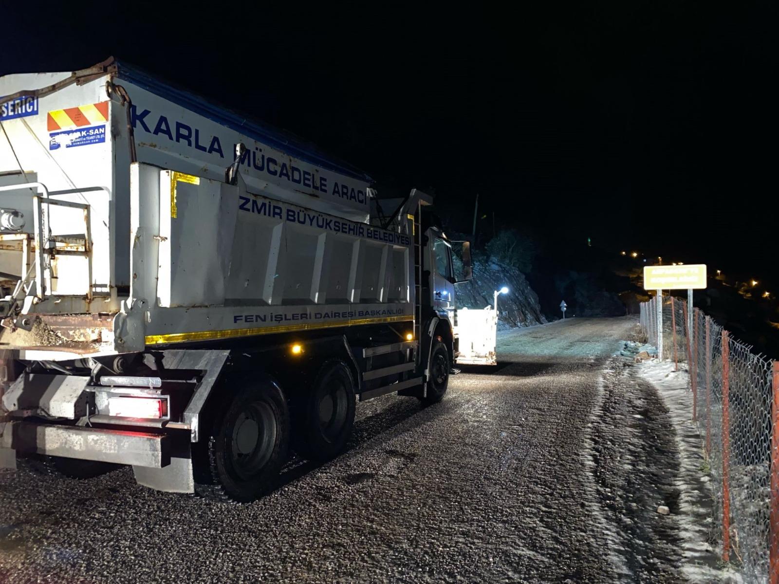 İzmir Büyükşehir Belediyesi, soğuyan hava ile birlikte, İzmir’in yüksek kesimlerinde etkisini gösteren kar yağışı ve buzlanmaya karşı alarm durumuna geçti. İzmir Büyükşehir Belediyesi Fen İşleri Dairesi Başkanlığı ekipleri kar yağışının günlük hayatı etkilememesi için önceki gün kar küreme ve tuzlama çalışması yaptı. Ekipler, hava sıcaklıkları normale dönene kadar ana ulaşım yolları ve köy yollarını açık tutmak için sahada görevini aralıksız sürdürecek.