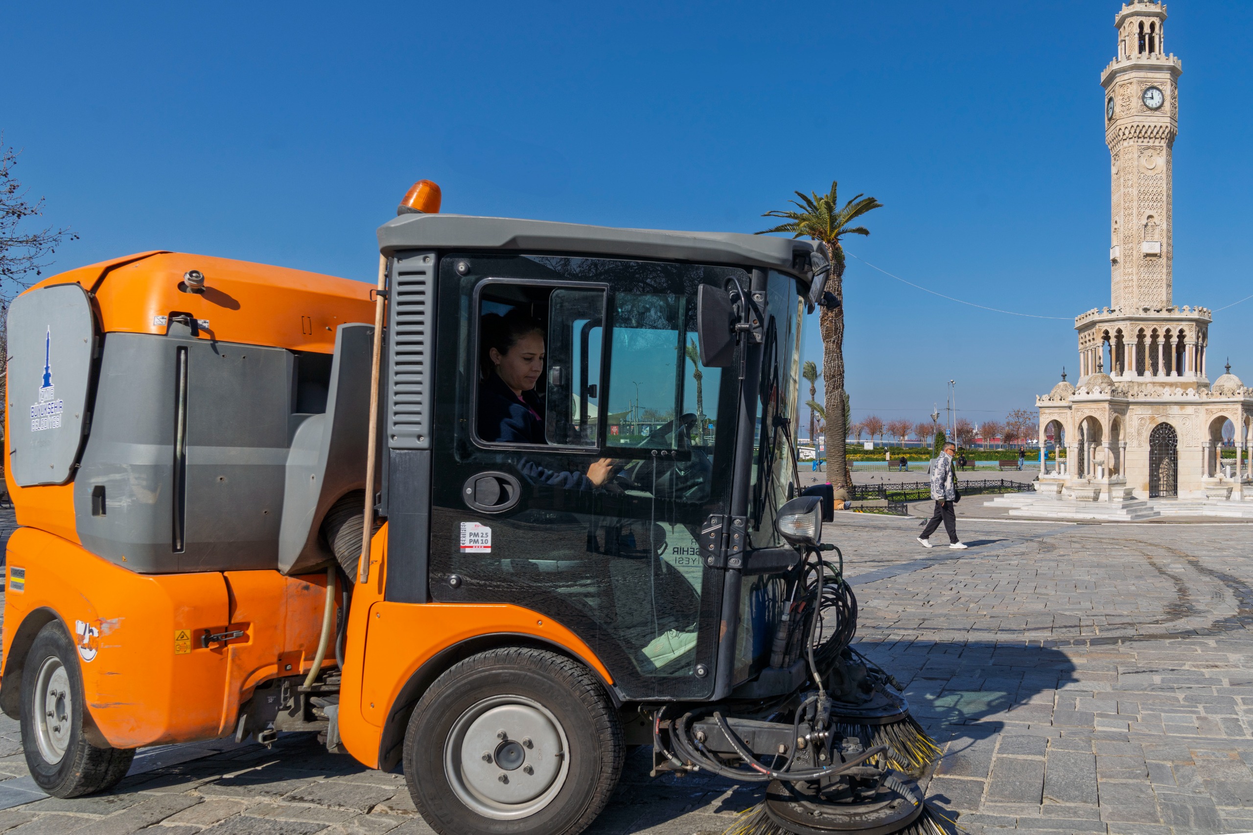 İzmir Büyükşehir Belediyesi’nin kadın istihdamını destekleyen politikaları, kadınların iş hayatına kazandırılmasına katkı sunarak topluma örnek oluyor. Belediyenin kritik birimlerinin yanı sıra sokak temizliği, operatör, zabıta ve daha birçok alanda çalışan kadınlar, işini severek yürütüyor. Her alanda sözü olan kadınların emeği, kenti güzelleştiriyor. Kadın süpürgeciler de sabahın erken saatlerinde işbaşı yaparak, Büyükşehir Belediyesi’nin sorumluluk sahasındaki cadde, meydan ve bulvarları süpürüyor.