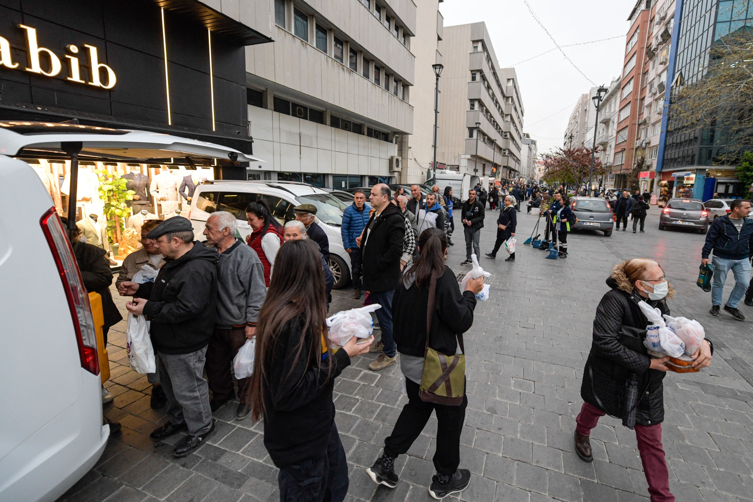 İzmir Büyükşehir Belediyesi’nin ramazan ayının başından bu yana her akşam bir ilçede kurduğu iftar sofraları kapsamında Kemeraltı’nda yapılacağı duyurulan buluşma İzmir Valiliği’nin kararıyla iptal edildi. Yapılan hazırlıklara rağmen iftar sofraları kurulamayınca, Büyükşehir ekipleri 4 bin kişilik sıcak yemeği yurttaşlara paket şeklinde dağıttı.