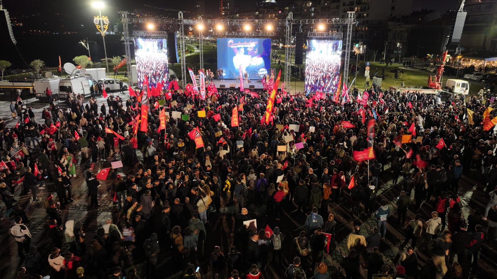 İstanbul Büyükşehir Belediye Başkanı Ekrem İmamoğlu’nun tutuklanmasına tepki olarak Gündoğdu Meydanı’nda düzenlenen Adalet Buluşması’nda konuşan İzmir Büyükşehir Belediye Başkanı Dr. Cemil Tugay, “Ben Gazi Mustafa Kemal Atatürk'ün emanetine ve haklarımıza sonuna kadar sahip çıkmaya devam edeceğim” dedi.