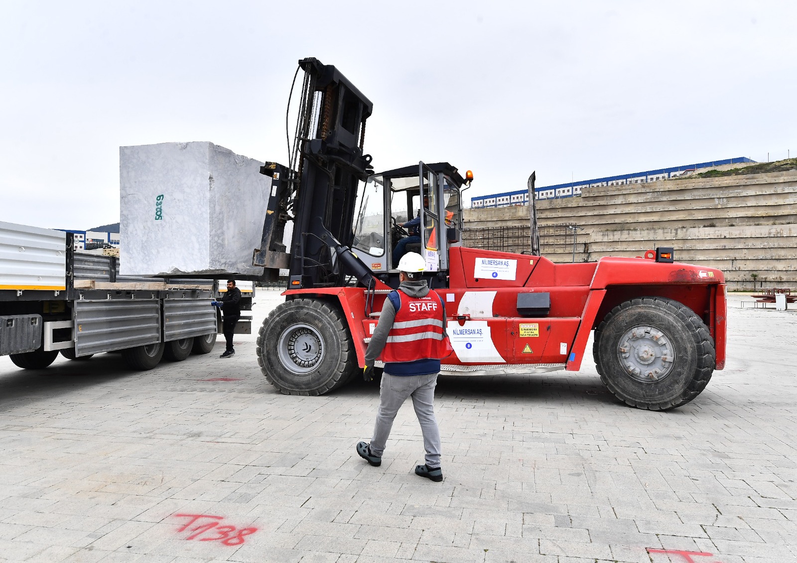 Dünyanın dört bir yanından katılımcısı, yerli ve yabancı ziyaretçi sayısıyla öncü olan Mermer Fuarı’nda kurulum hazırlıklarının başladığını bildiren İZFAŞ Genel Müdürü Tuğçe Cumalıoğlu, “İlk mermer blok alanımıza indirildi. Dünyanın her tarafından binin üzerinde blok, bin civarında katılımcı bekliyoruz. Düzenlediğimiz fuarlarla sanayi ve ticarete katkı sağlamaya devam edeceğiz. Daha güçlü bir gelecek için çalışmayı ve bu güzel ülke için üretmeyi sürdüreceğiz” şeklinde konuştu.