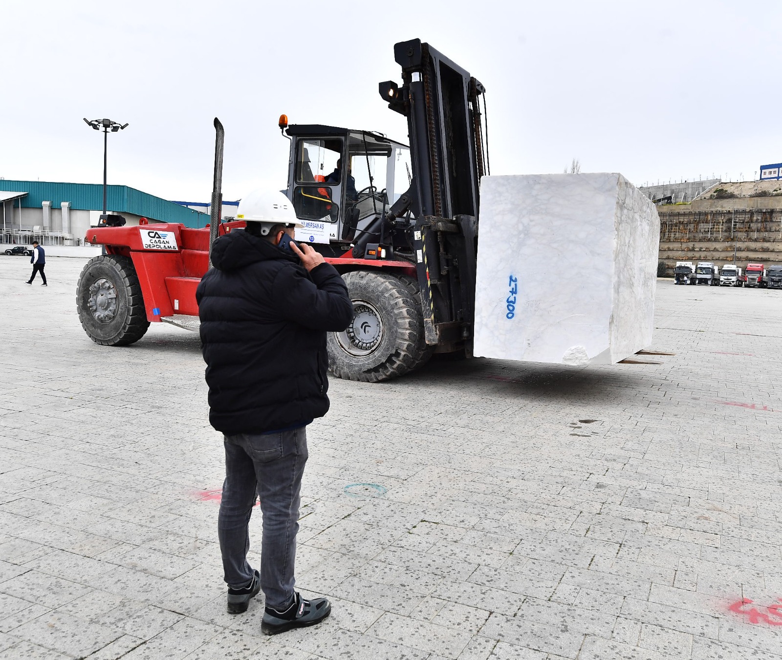 Fuarda sergilenecek blokların her birinin ağırlığı 20 tonu aşabiliyor. Bini aşkın bloğun getirileceği fuar alanında sergilenecek mermerlerin toplam ağırlığı ise yaklaşık 10 bin ton olduğu bilinen Eyfel Kulesi’nin iki katına ulaşarak 20 bin tonu bulacak.