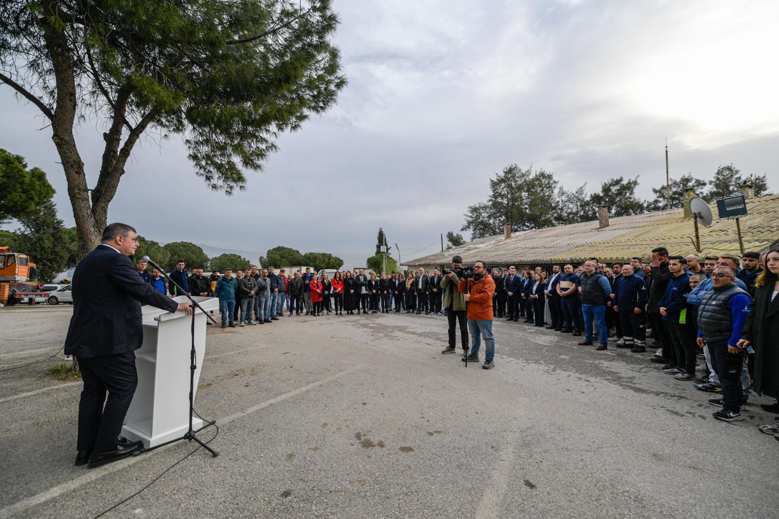 İzmir Büyükşehir Belediye Başkanı Dr. Cemil Tugay, Park ve Bahçeler Dairesi Başkanlığı çalışanlarıyla bayramlaştı. İzmir Büyükşehir Belediyesi’nin bir aile olduğunu belirten Başkan Tugay, çalışanlara Türkiye’nin içinde bulunduğu gündeme karşı umut ve dayanışma mesajı verdi. Başkan Tugay, “Biraz keyfimiz kaçık, umudumuz azalmış gibi hissedebiliriz ama hepimiz ayrı ayrı güçlüyüz. Birbirinizin koluna girdiğinizde her şey çok daha kolay çözülür” dedi.