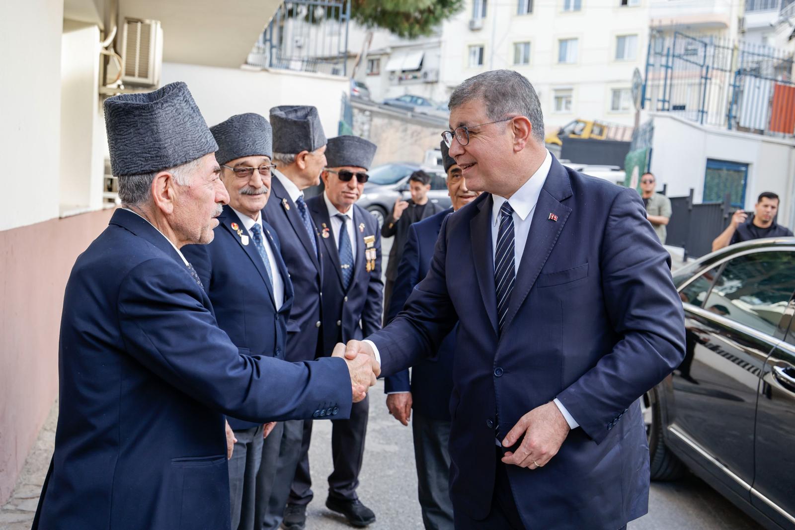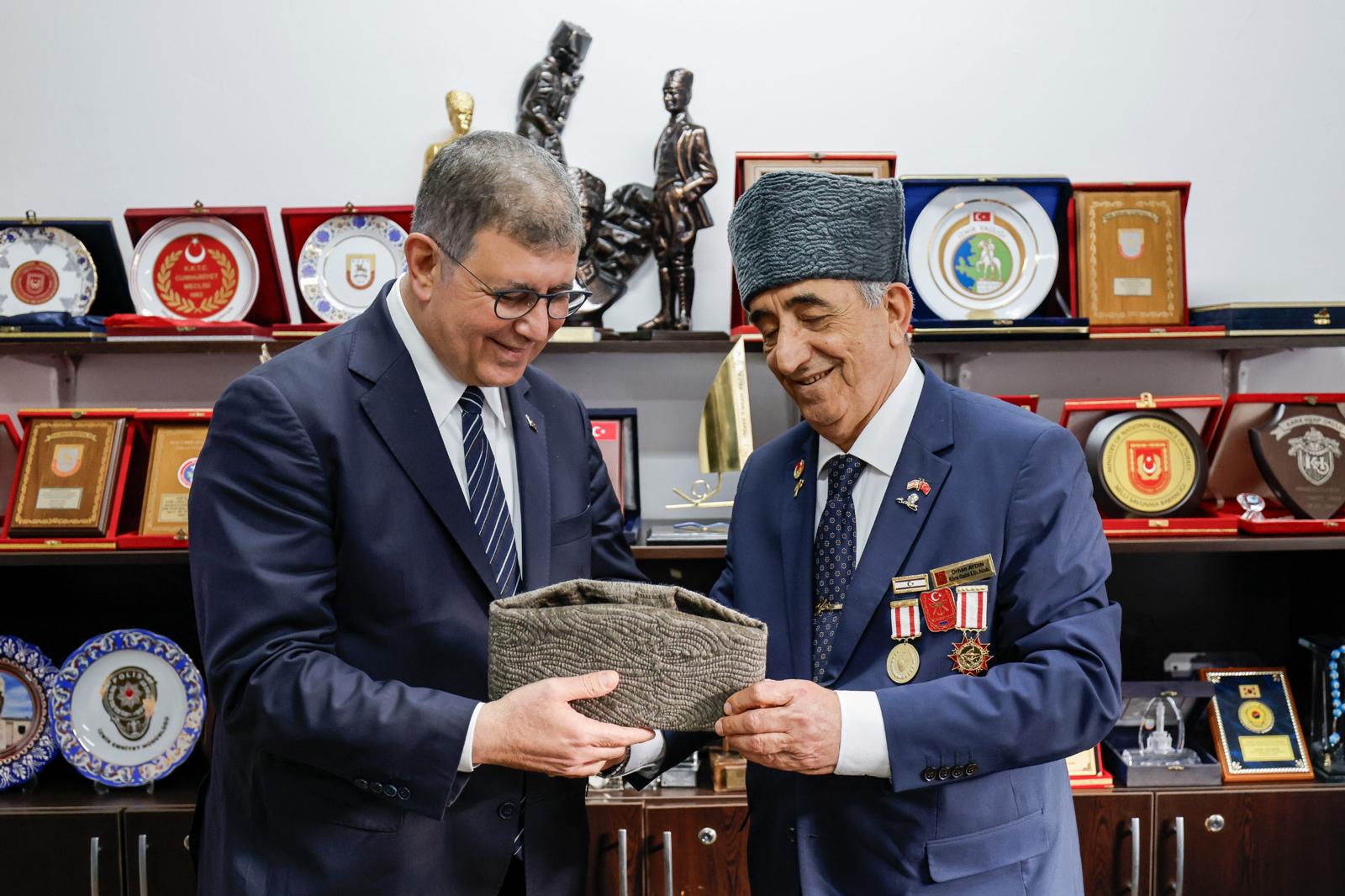İzmir Büyükşehir Belediye Başkanı Dr. Cemil Tugay, Muharip Gaziler Derneği Karşıyaka Şubesi, Şehit Aileleri ve Gaziler Derneği ile Muharip Gaziler Derneği İzmir Şubesi'ni ziyaret etti. Şehit aileleri ve gazilerin yaklaşan Ramazan Bayramı'nı kutlayan Başkan Dr. Cemil Tugay'a, vefat eden Kıbrıs Gazisi babası Cemal Tugay'ın da üyesi olduğu Muharip Gaziler Derneği İzmir Şubesi'nde kalpak, kravat ve kravat iğnesi hediye edildi. Başkan Dr. Cemil Tugay, “Ben kendimi aileden sayıyorum. Vatanımızın size minnet borcu çok büyük. Belediye olarak yanınızda olmayı önemli bir görev olarak görüyoruz, elimizden ne geliyorsa yapmaya her zaman hazırız” dedi.