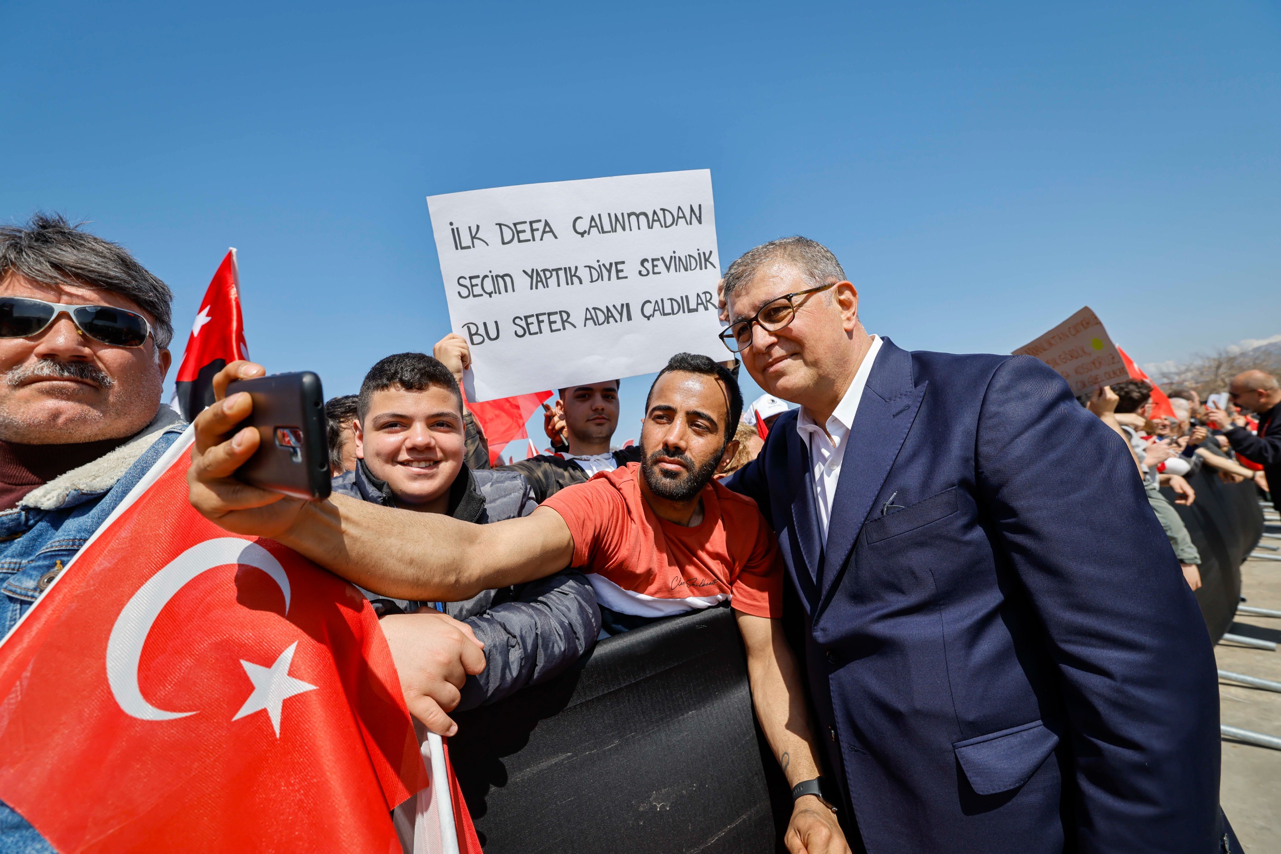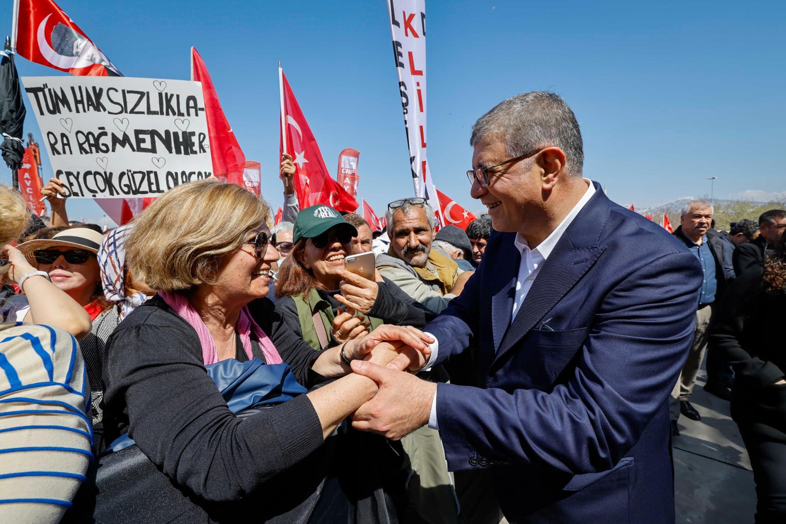 İzmir Büyükşehir Belediye Başkanı Dr. Cemil Tugay, Cumhuriyet Halk Partisi'nin (CHP) Cumhurbaşkanı adayı ve İstanbul Büyükşehir Belediye Başkanı Ekrem İmamoğlu’nun tutuklanmasını protesto etmek üzere İstanbul Maltepe'de düzenlenen mitinge katıldı.